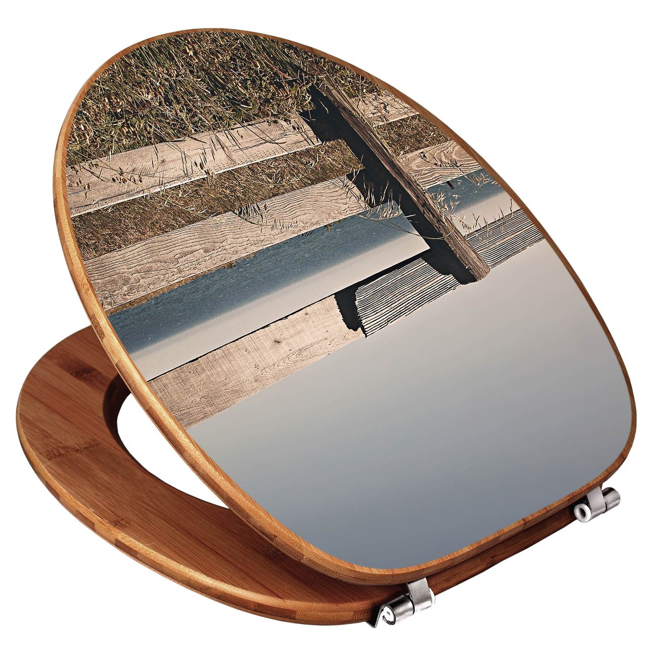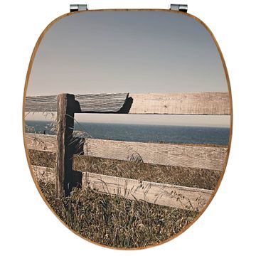 Mit dem banjado Toilettensitz in Bambus verbinden Sie Design und Funktionalität. Sie erhalten den WC-Sitz mit bewährt schwerer Holz Qualität und Universal Scharnieren. Das Motiv Motiv Zaun am Meer besteht aus einer schutzlaminierten Motivfolie, die durch das Schutzlaminat zusätzlich vor Kratzern schützt. Durch diesen Motivdruck wird der WC-Sitz zu einem Blickfang in Ihrem Bad.