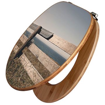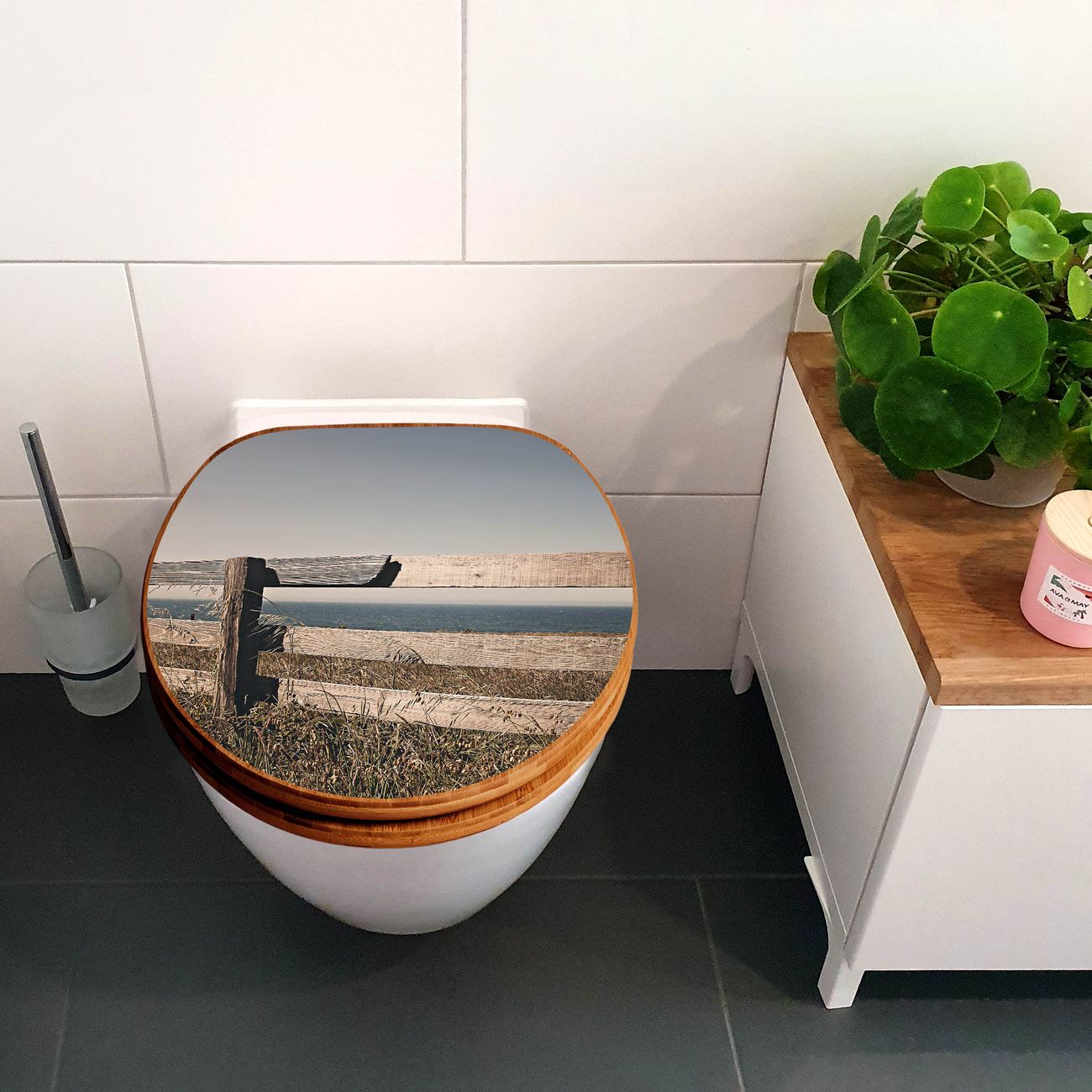 Design WC-Sitz Bambus Holz Motiv Zaun am Meer