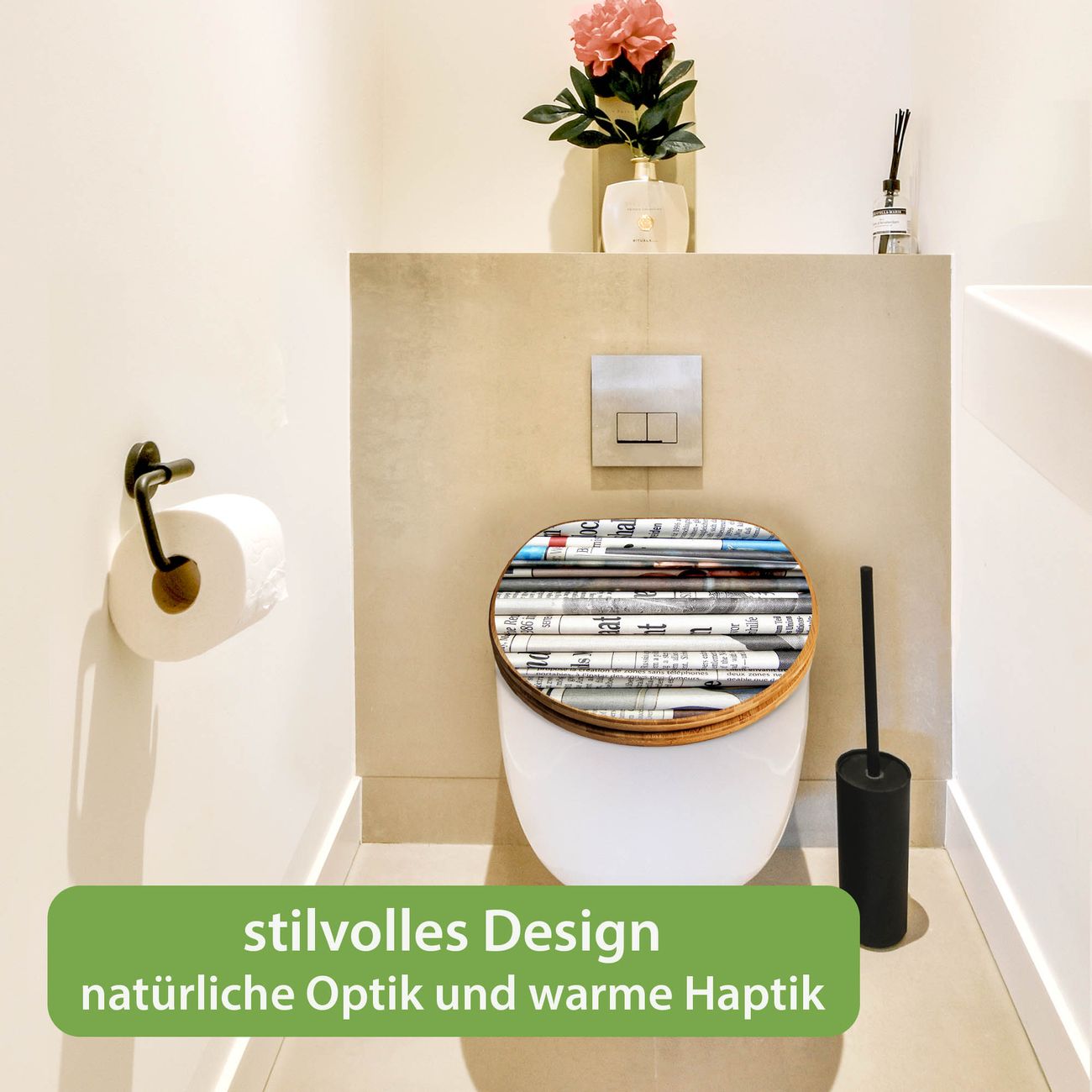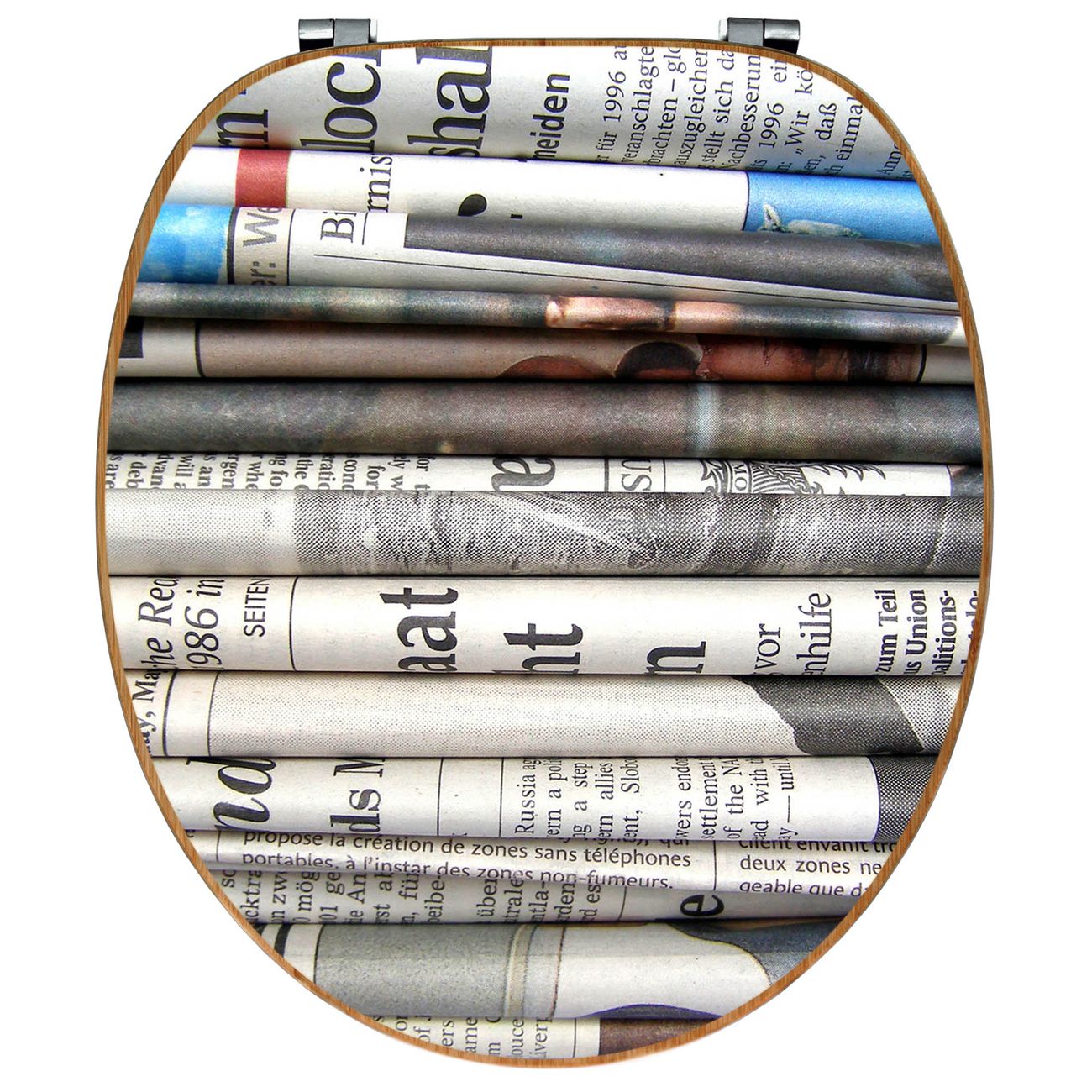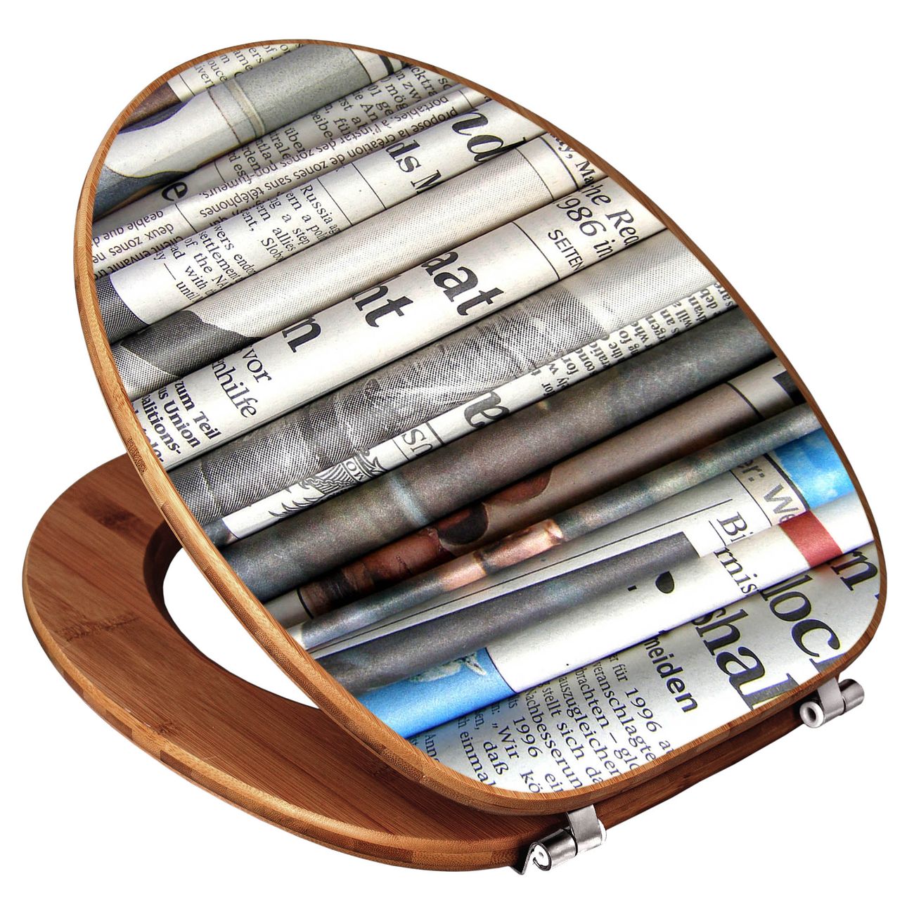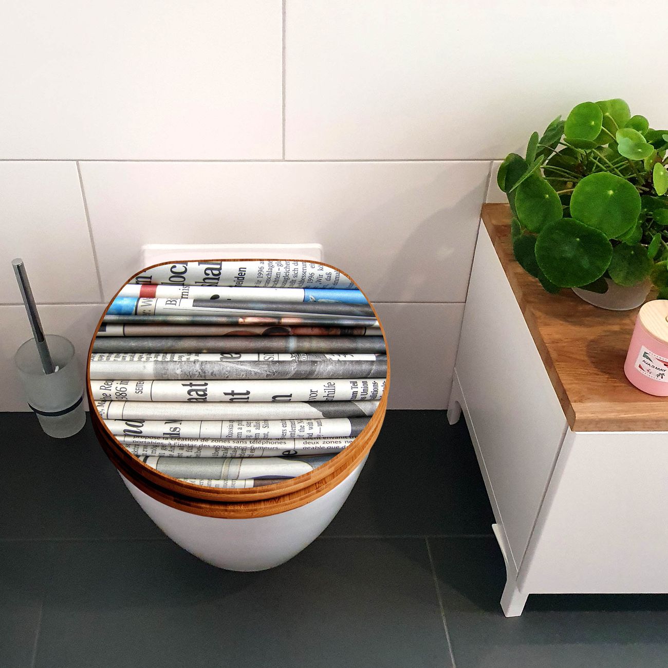 Design WC-Sitz Bambus Holz Motiv Zeitungen