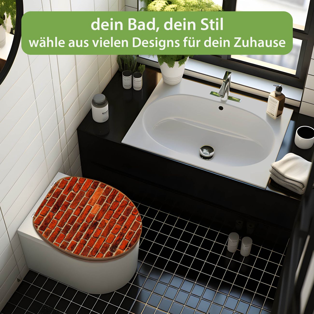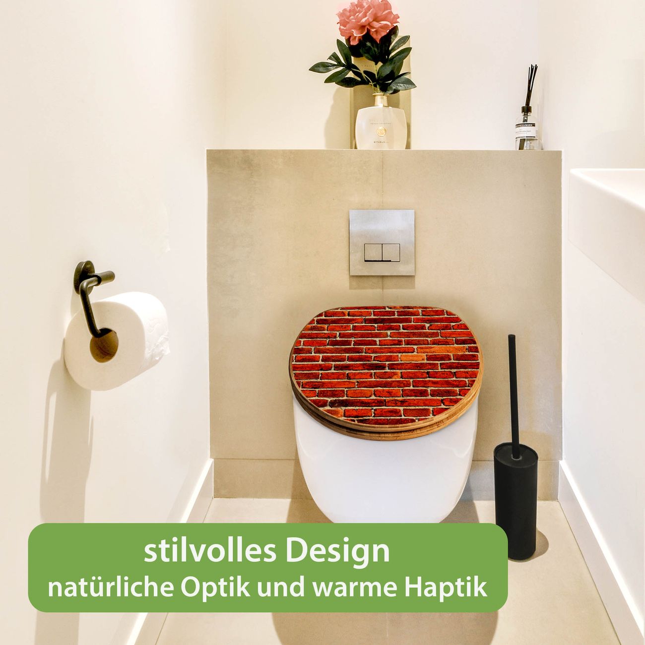 Design WC-Sitz Bambus Holz Motiv Ziegelwand