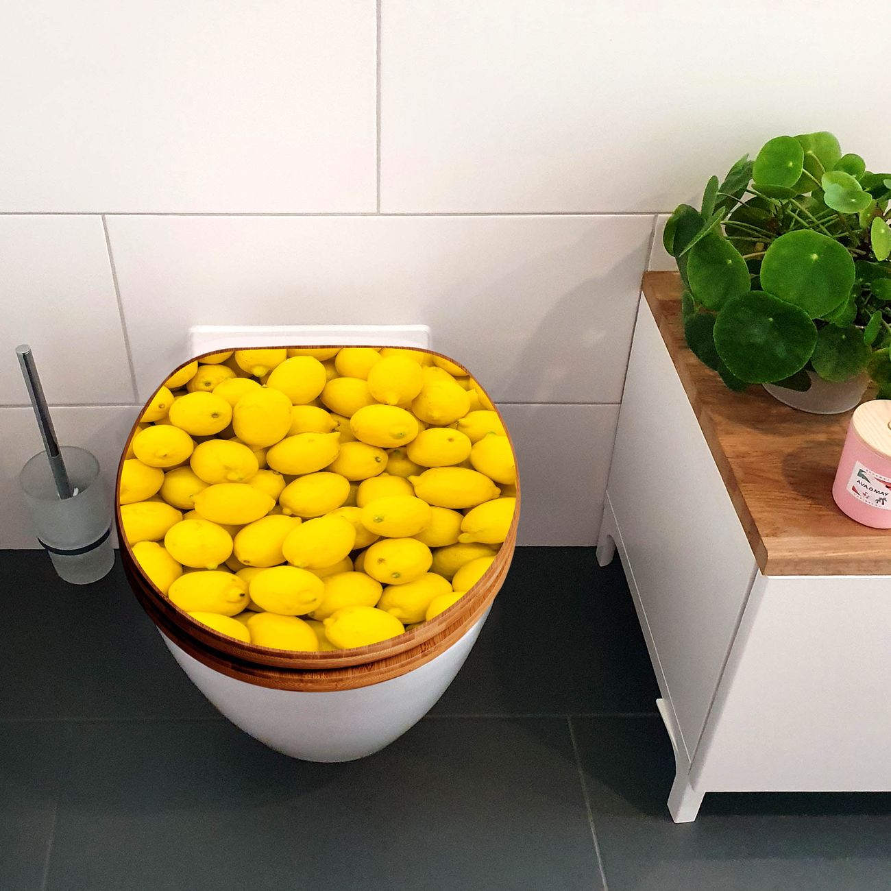 Design WC-Sitz Bambus Holz Motiv Zitronen