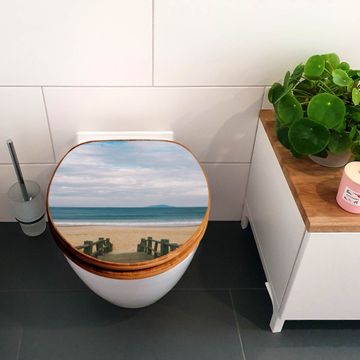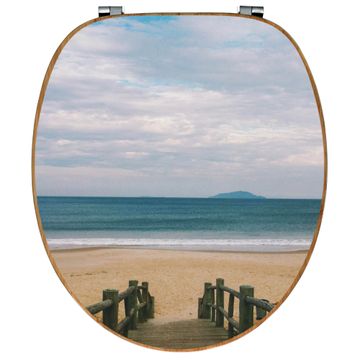 Mit dem banjado Toilettensitz in Bambus verbinden Sie Design und Funktionalität. Sie erhalten den WC-Sitz mit bewährt schwerer Holz Qualität und Universal Scharnieren. Das Motiv Motiv Zum Strand besteht aus einer schutzlaminierten Motivfolie, die durch das Schutzlaminat zusätzlich vor Kratzern schützt. Durch diesen Motivdruck wird der WC-Sitz zu einem Blickfang in Ihrem Bad.