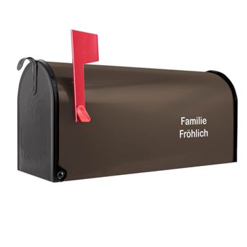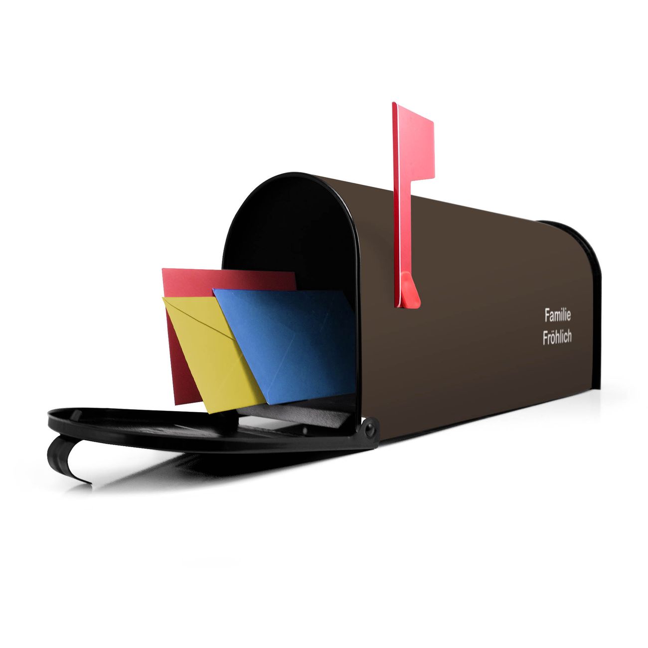 Unser amerikanischer Briefkasten mit dem Farbe Schokobraun hat ein sehr ansprechendes und ausgefallenes Design, ist in der Grundfarbe weiß, grün oder schwarz erhältlich. Damit entlocken Sie Ihren Nachbarn und dem Postboten immer wieder ein Lächeln. Die Mailbox ist ein Original Import aus Mississippi USA und wird von unserer kleinen Manufaktur in Sachsen von Hand veredelt. Die US-Mailbox bietet ausreichend Platz auch für große Sendungen, eine Fahne die Ihnen Post anzeigt, wetterfestes und äußerst stabiles Material - so macht Post empfangen Freude.