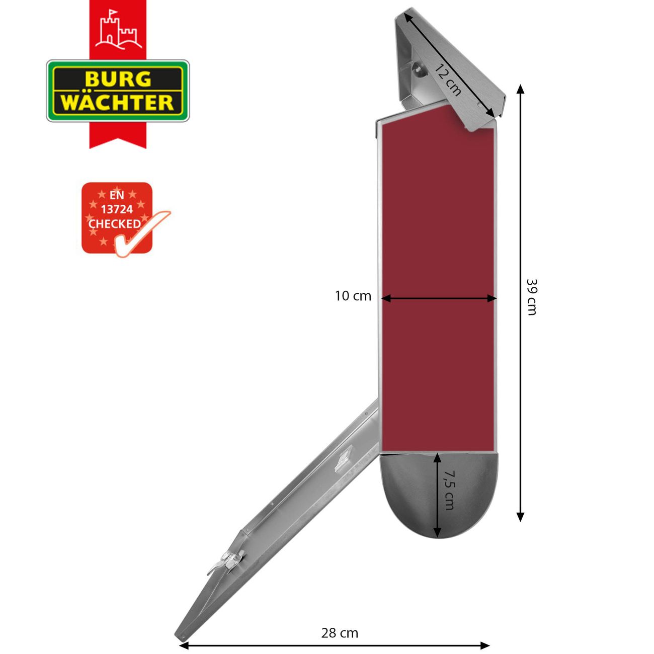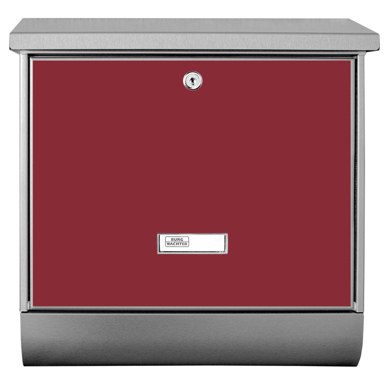 Der BURG-WÄCHTER Edelstahl Briefkasten mit Farbe Burgund und Zeitungsrolle bietet Ihnen mit seinem Fassungsvermögen genügend Platz auch für große A4 Sendungen und Zeitschriften. Das integrierte Regendach schützt Ihre Post vor dem Eindringen von Regen.