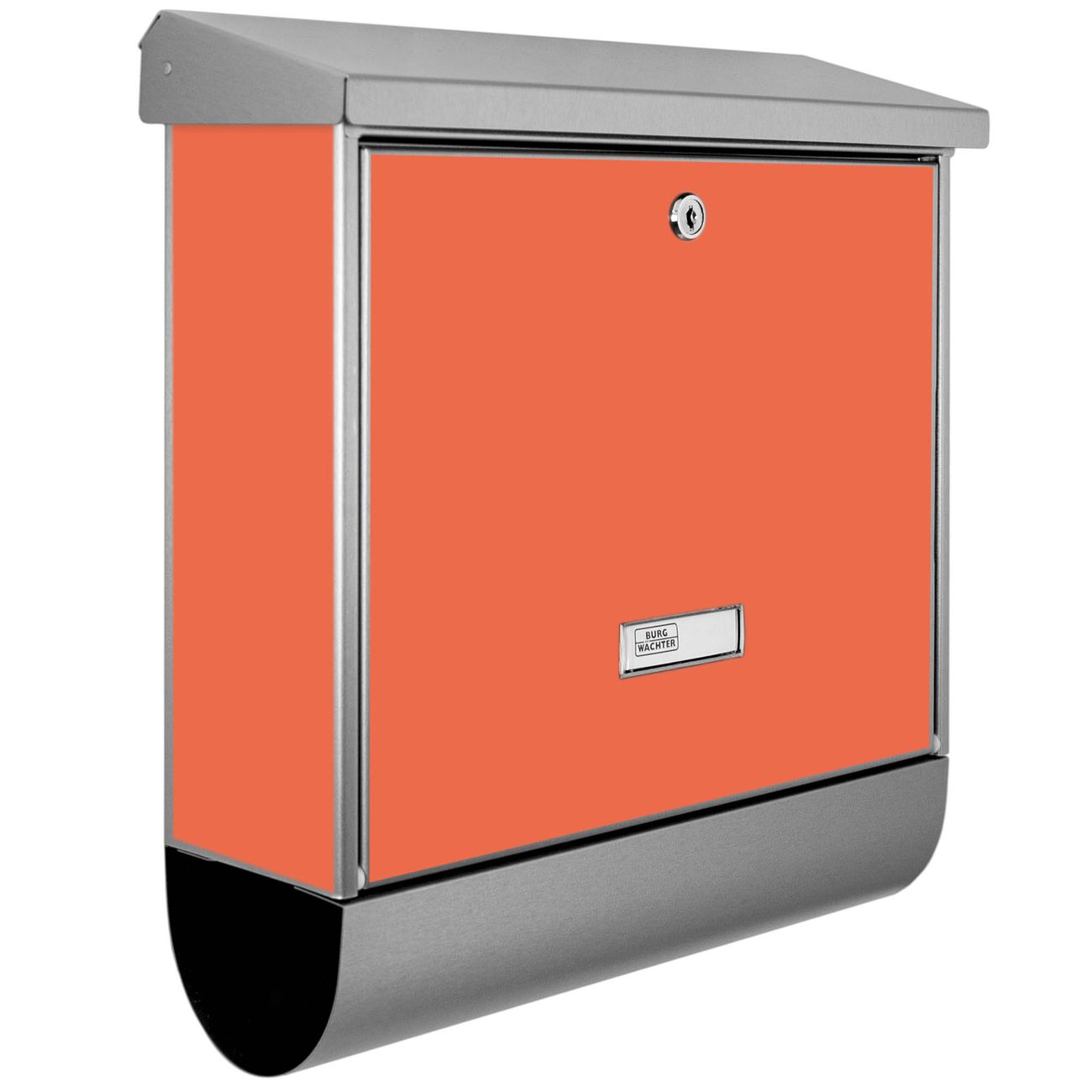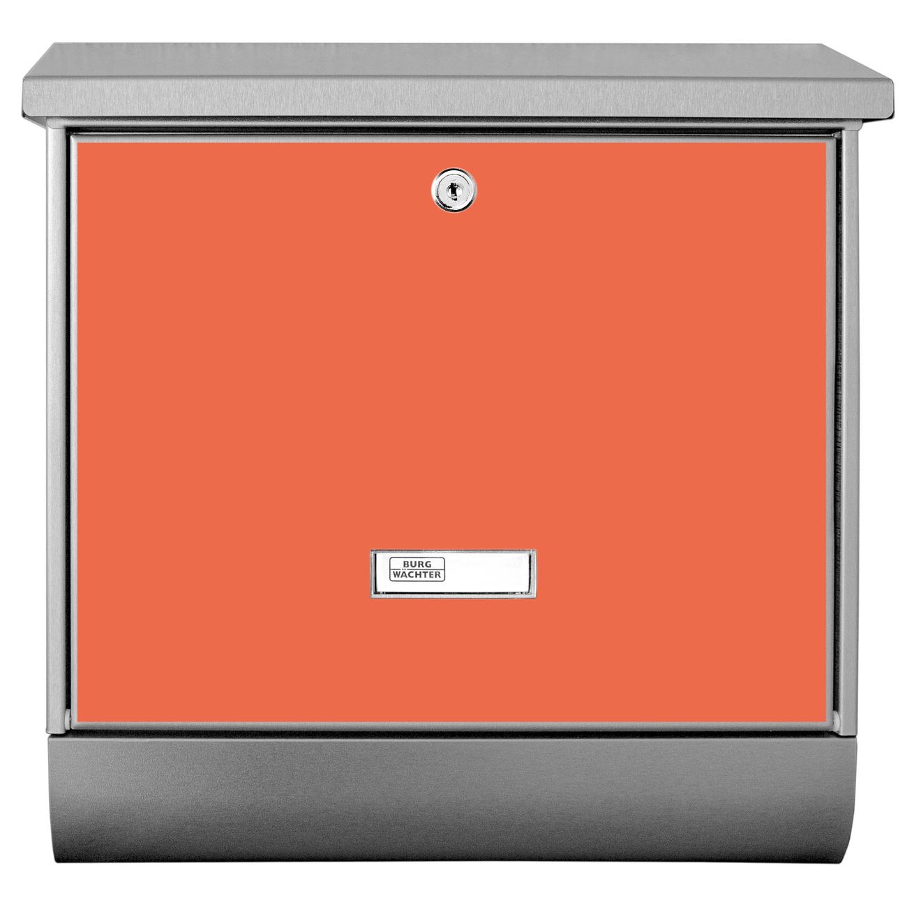 Der BURG-WÄCHTER Edelstahl Briefkasten mit Farbe Orange und Zeitungsrolle bietet Ihnen mit seinem Fassungsvermögen genügend Platz auch für große A4 Sendungen und Zeitschriften. Das integrierte Regendach schützt Ihre Post vor dem Eindringen von Regen.