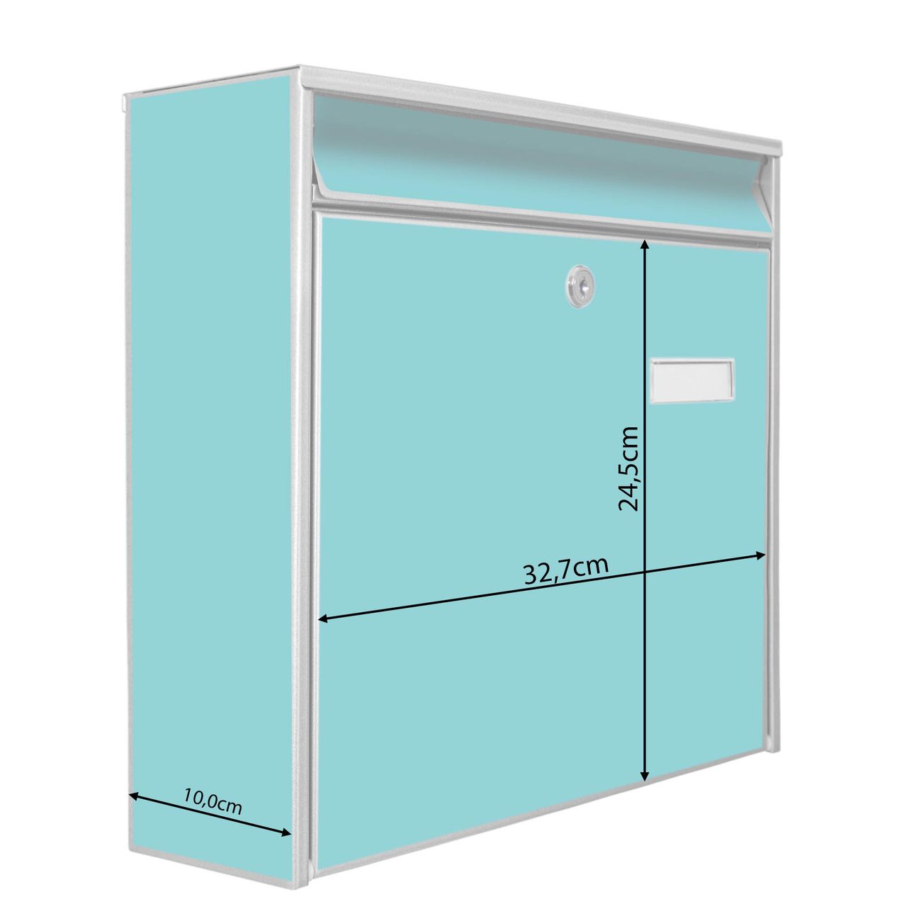 Der Burg Wächter Mail Briefkasten mit Farbe Türkis bietet Ihnen mit seinem Fassungsvermögen genügend Platz auch für große A4 Sendungen. Auf Wunsch können Sie bei uns den passenden Standfuß kaufen und so aus dem Wandbriefkasten einen Standbriefkasten machen. Wir bieten Ihnen ebenfalls Namensschilder, bereits beschriftet oder frei zu beschriften, und verschiedene selbst gestaltete Bitte-Keine-Werbung-Aufkleber.