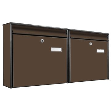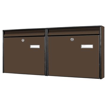 FUNKTION: Die Burg Wächter doppel Briefkastenanlage mit Farbe Schokobraun bietet Ihnen ein großes Fassungsvermögen, sodass auch A4 Sendungen eingeworfen werden können. Das Namensschild lässt sich individuell beschriften. DESIGN: Die 2 Briefkästen mit Schokobraun Farbe haben ein sehr ansprechendes und zeitloses Design. Heben Sie Sich von der tristen grauen Masse ab, ohne auf Funktionalität zu verzichten. Sie erhalten 2 Schlüssel sowie das Montagematerial. DETAILS: Der Doppelbriefkasten besteht aus verzinktem Stahl weiß. Er ist 72,5cm x 32,2cm x 10cm groß. Das Farbe besteht aus einer wetter- und UV-festen Folie, die Ihren Briefkasten zusätzlich vor Kratzern schützt. NUTZEN: Die stabile Bauart sowie die Wetterfestigkeit machen diese doppel Briefkästen zu einem zuverlässigen Begleiter im Alltag. Effektvoll in Reihe gehangen schmückt die Anlage jede Hauswand. BANJADO: Ihr Briefkasten wird in Sachsen in einer kleinen Manufaktur von Hand veredelt. Die Farbefolie ist lösungsmittelfrei und schutzlaminiert für einen langen Halt. Wir legen großen Wert auf die Verbindung von Funktionalität und Design. Sie erhalten Handarbeit aus Sachsen.