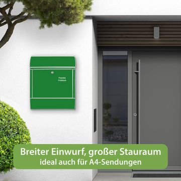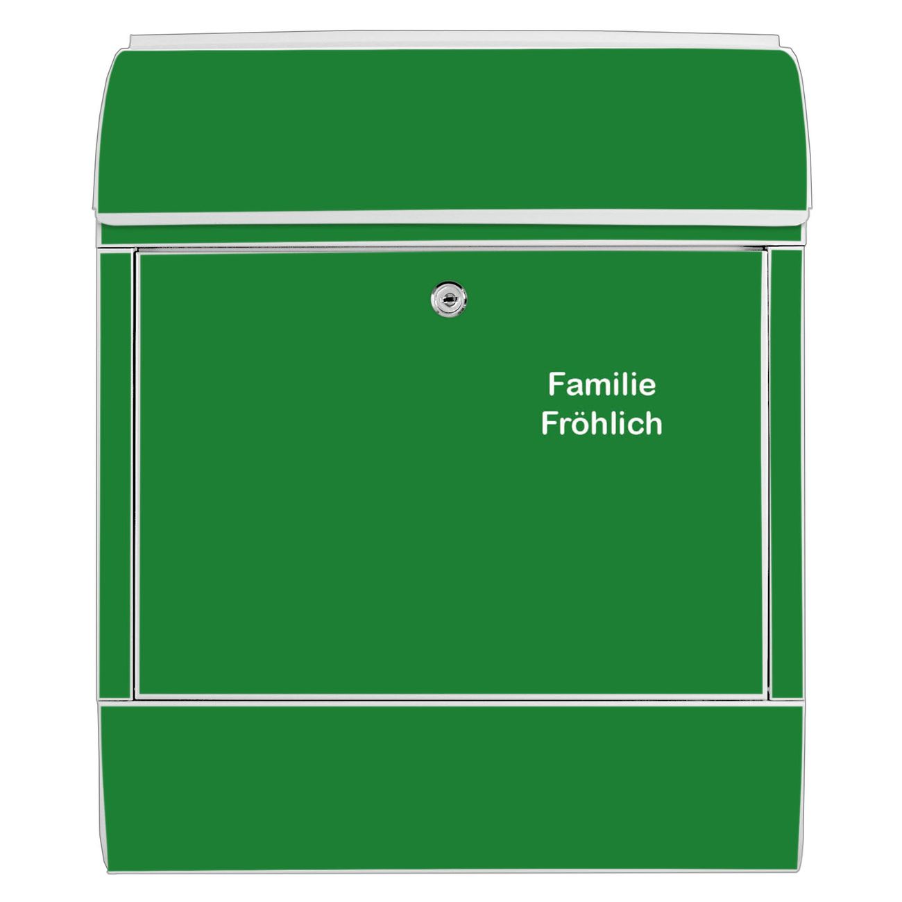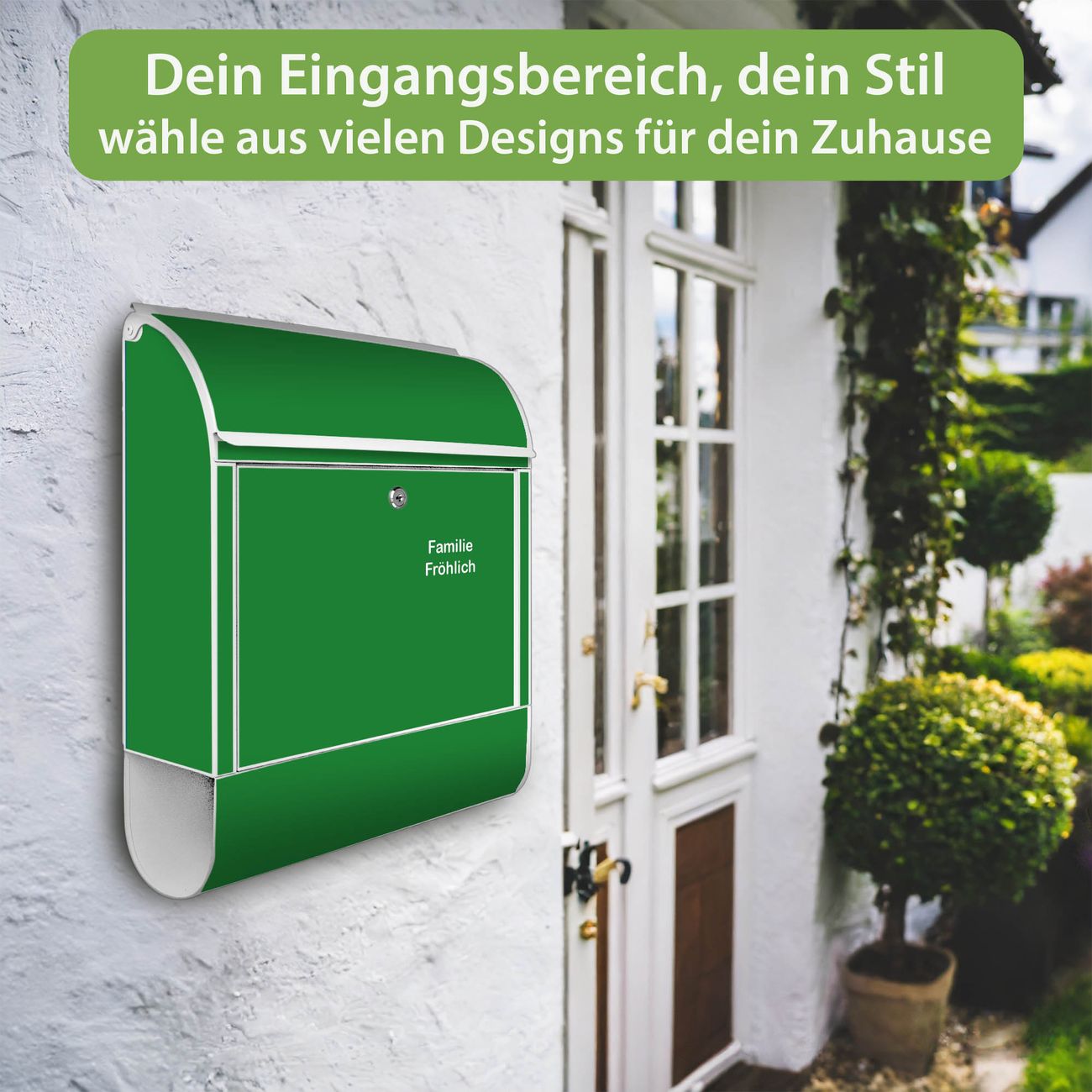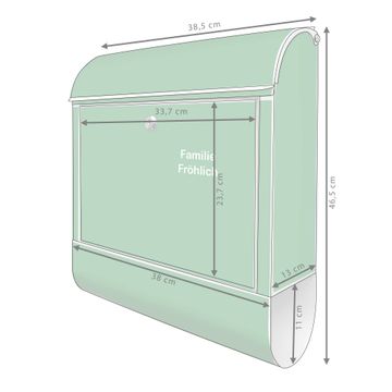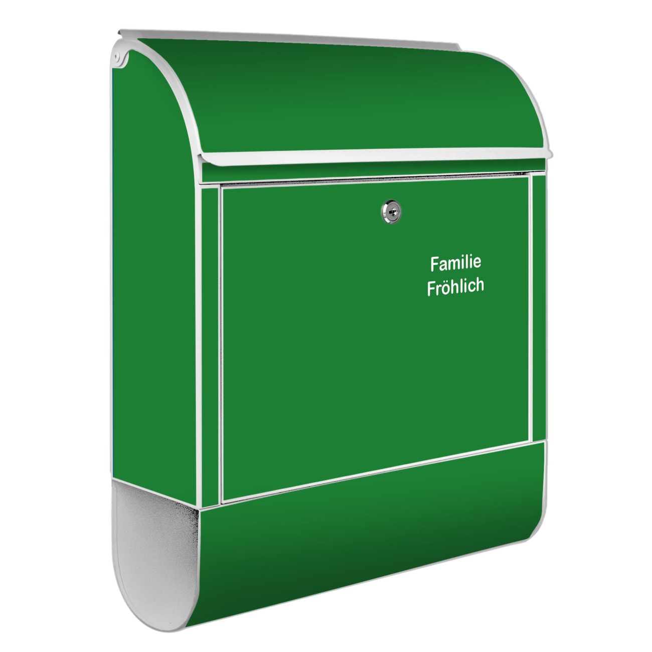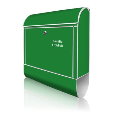 DESIGN: Der Postkasten mit Motiv Farbe Grün hat ein sehr ansprechendes und ausgefallenes Design, damit entlocken Sie Ihren Nachbarn und dem Postboten ein Lächeln. Heben Sie Sich von der tristen grauen Masse ab, ohne auf Funktionalität zu verzichten. DETAILS: Der Postkasten besteht aus pulverbeschichtetem Stahl. Er ist 38x46x12,5cm groß. Das Motiv besteht aus einer wetter- und UV-resistenten Folie, die mit einem Schutzlaminat überzogen ist, sodass der Briefkasten zusätzlich vor Kratzern geschützt ist. Der Briefkasten wird mit Montagematerial, zusätzlich zwei Schlüssel sowie einer Bohrschablone geliefert. NUTZEN: Sie können diesen Briefkasten sowohl als Wandbriefkasten montieren oder einen passenden Ständer kaufen und als Standbriefkasten einbetonieren. Die Größe bietet genügend Platz für Sendungen aller Art, der Einwurf fasst auch größere A4 Sendungen. BANJADO: Ihr Briefkasten wird in Sachsen in einer kleinen Manufaktur von Hand veredelt. Die Motivfolie ist lösungsmittelfrei und schutzlaminiert für einen langen Halt. Wir legen großen Wert auf die Verbindung von Funktionalität und Design. Sie erhalten Handarbeit aus Sachsen.
