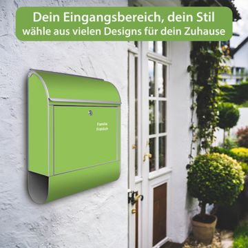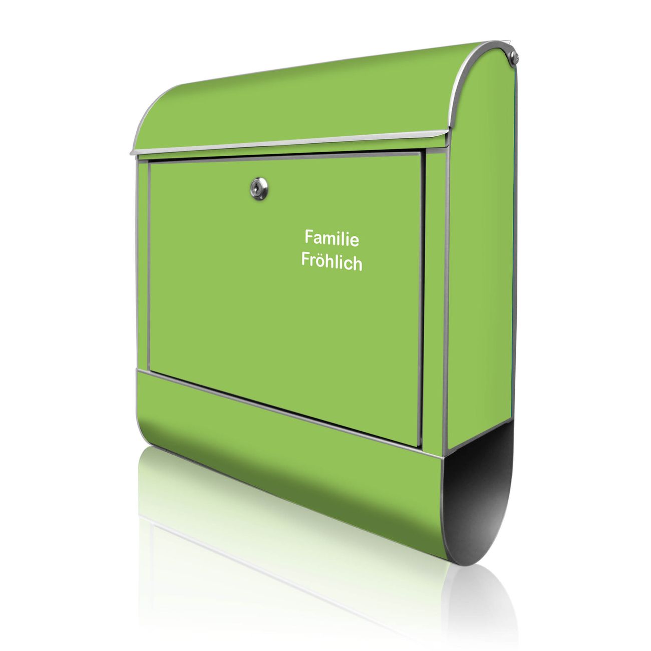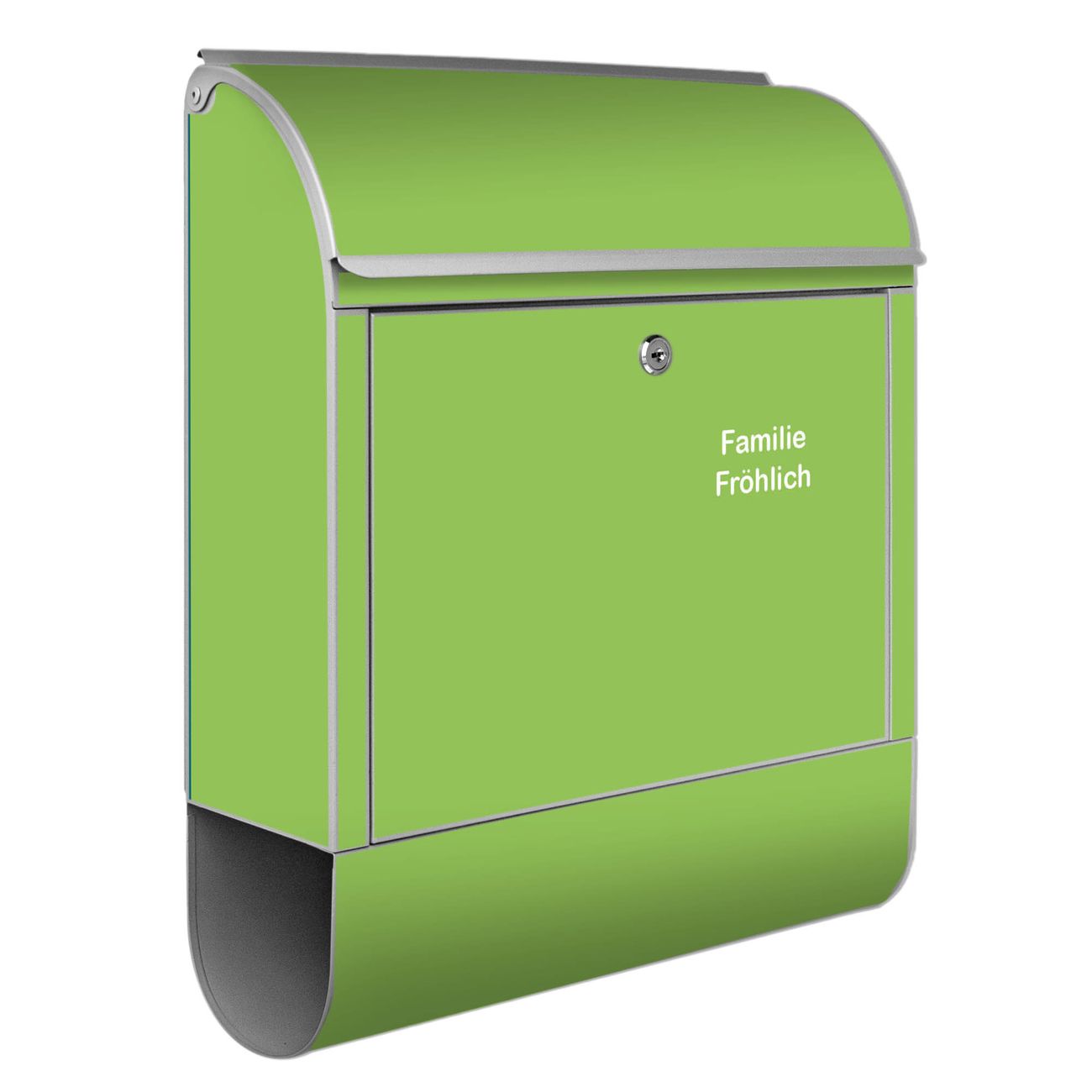 DESIGN: Der Postkasten mit Motiv Farbe Limettengrün hat ein sehr ansprechendes und ausgefallenes Design, damit entlocken Sie Ihren Nachbarn und dem Postboten ein Lächeln. Heben Sie Sich von der tristen grauen Masse ab, ohne auf Funktionalität zu verzichten. DETAILS: Der Postkasten besteht aus pulverbeschichtetem Stahl. Er ist 38x46x12,5cm groß. Das Motiv besteht aus einer wetter- und UV-resistenten Folie, die mit einem Schutzlaminat überzogen ist, sodass der Briefkasten zusätzlich vor Kratzern geschützt ist. Der Briefkasten wird mit Montagematerial, zusätzlich zwei Schlüssel sowie einer Bohrschablone geliefert. NUTZEN: Sie können diesen Briefkasten sowohl als Wandbriefkasten montieren oder einen passenden Ständer kaufen und als Standbriefkasten einbetonieren. Die Größe bietet genügend Platz für Sendungen aller Art, der Einwurf fasst auch größere A4 Sendungen. BANJADO: Ihr Briefkasten wird in Sachsen in einer kleinen Manufaktur von Hand veredelt. Die Motivfolie ist lösungsmittelfrei und schutzlaminiert für einen langen Halt. Wir legen großen Wert auf die Verbindung von Funktionalität und Design. Sie erhalten Handarbeit aus Sachsen.
