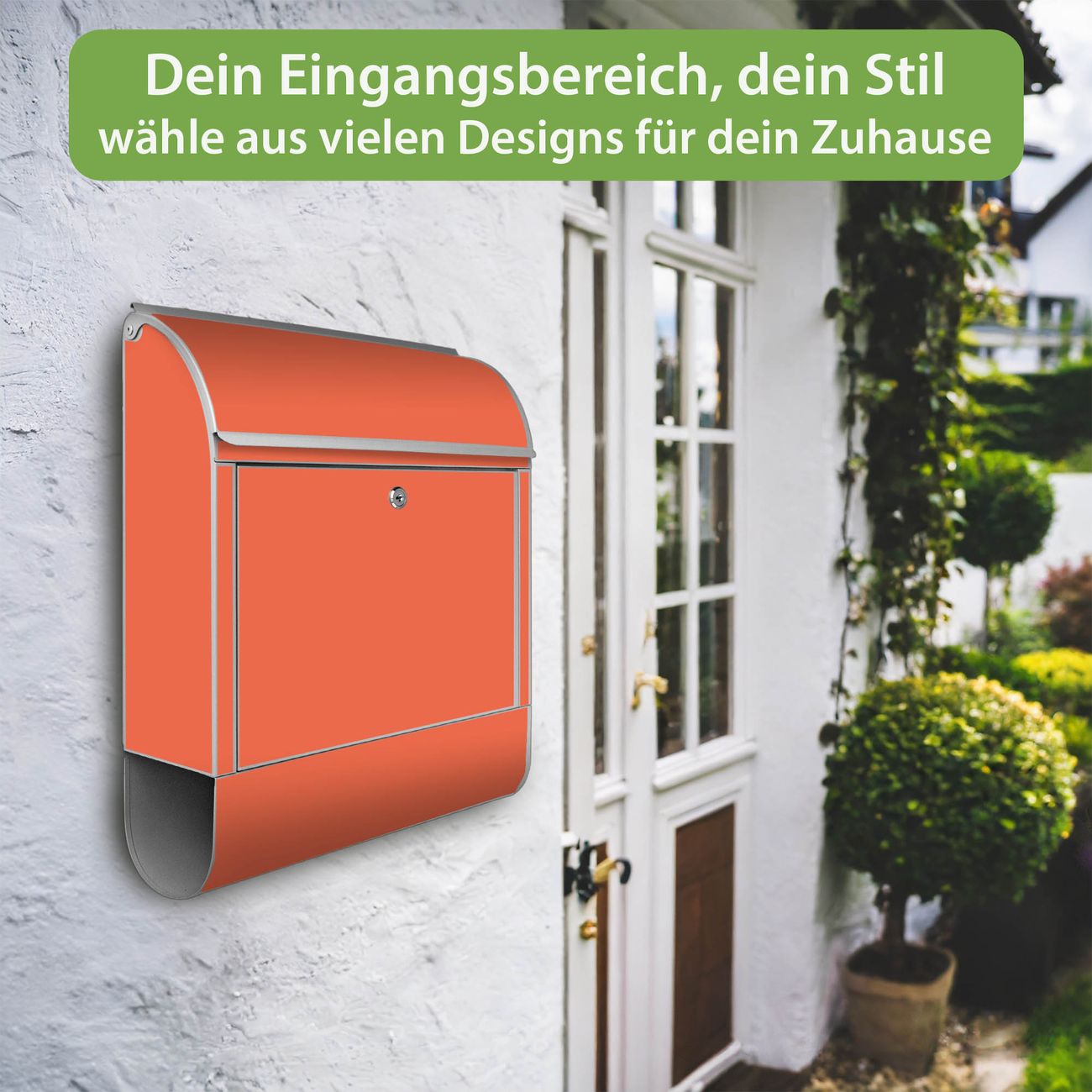DESIGN: Der Postkasten mit Motiv Farbe Orange hat ein sehr ansprechendes und ausgefallenes Design, damit entlocken Sie Ihren Nachbarn und dem Postboten ein Lächeln. Heben Sie Sich von der tristen grauen Masse ab, ohne auf Funktionalität zu verzichten. DETAILS: Der Postkasten besteht aus pulverbeschichtetem Stahl. Er ist 38x46x12,5cm groß. Das Motiv besteht aus einer wetter- und UV-resistenten Folie, die mit einem Schutzlaminat überzogen ist, sodass der Briefkasten zusätzlich vor Kratzern geschützt ist. Der Briefkasten wird mit Montagematerial, zusätzlich zwei Schlüssel sowie einer Bohrschablone geliefert. NUTZEN: Sie können diesen Briefkasten sowohl als Wandbriefkasten montieren oder einen passenden Ständer kaufen und als Standbriefkasten einbetonieren. Die Größe bietet genügend Platz für Sendungen aller Art, der Einwurf fasst auch größere A4 Sendungen. BANJADO: Ihr Briefkasten wird in Sachsen in einer kleinen Manufaktur von Hand veredelt. Die Motivfolie ist lösungsmittelfrei und schutzlaminiert für einen langen Halt. Wir legen großen Wert auf die Verbindung von Funktionalität und Design. Sie erhalten Handarbeit aus Sachsen.