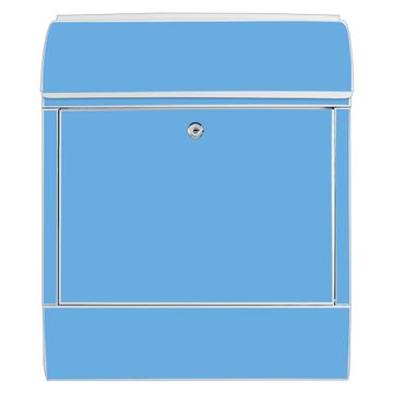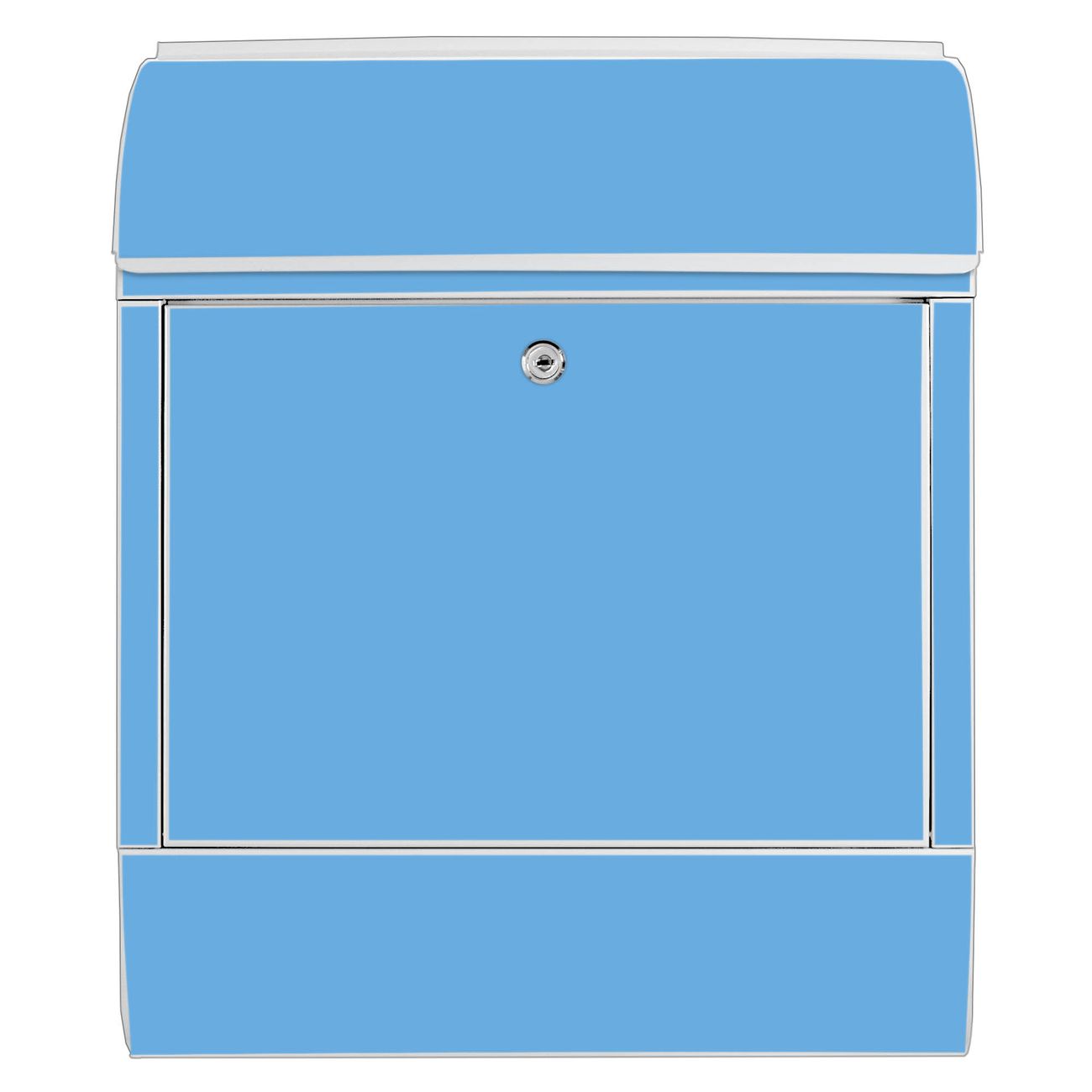 DESIGN: Der Postkasten mit Motiv Farbe Pastellblau hat ein sehr ansprechendes und ausgefallenes Design, damit entlocken Sie Ihren Nachbarn und dem Postboten ein Lächeln. Heben Sie Sich von der tristen grauen Masse ab, ohne auf Funktionalität zu verzichten. DETAILS: Der Postkasten besteht aus pulverbeschichtetem Stahl. Er ist 38x46x12,5cm groß. Das Motiv besteht aus einer wetter- und UV-resistenten Folie, die mit einem Schutzlaminat überzogen ist, sodass der Briefkasten zusätzlich vor Kratzern geschützt ist. Der Briefkasten wird mit Montagematerial, zusätzlich zwei Schlüssel sowie einer Bohrschablone geliefert. NUTZEN: Sie können diesen Briefkasten sowohl als Wandbriefkasten montieren oder einen passenden Ständer kaufen und als Standbriefkasten einbetonieren. Die Größe bietet genügend Platz für Sendungen aller Art, der Einwurf fasst auch größere A4 Sendungen. BANJADO: Ihr Briefkasten wird in Sachsen in einer kleinen Manufaktur von Hand veredelt. Die Motivfolie ist lösungsmittelfrei und schutzlaminiert für einen langen Halt. Wir legen großen Wert auf die Verbindung von Funktionalität und Design. Sie erhalten Handarbeit aus Sachsen.