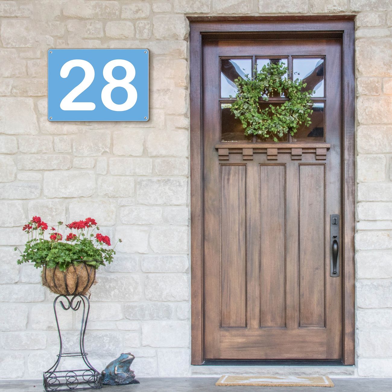 Das banjado Hausnummer Schild ist mit 4 Schrauben einfach am Haus anzubringen und zeigt dank der Größe stilsicher Ihre Hausnummer oder auch individuell Hausnummer mit Straßennamen. Das Hausschild personalisiert können Sie ganz auf Ihre Wünsche anpassen. Wir bieten verschiedenste Motive an. Dazu können Sie das Schild mit Ihrer Hausnummer anpassen.