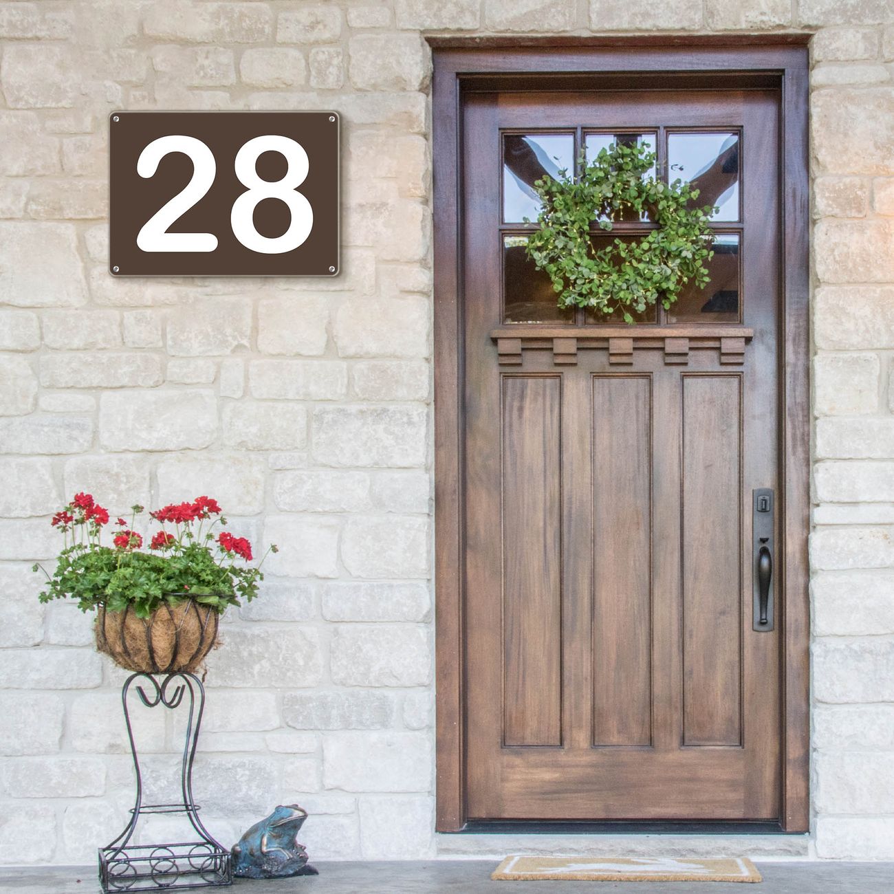 Das banjado Hausnummer Schild ist mit 4 Schrauben einfach am Haus anzubringen und zeigt dank der Größe stilsicher Ihre Hausnummer oder auch individuell Hausnummer mit Straßennamen. Das Hausschild personalisiert können Sie ganz auf Ihre Wünsche anpassen. Wir bieten verschiedenste Motive an. Dazu können Sie das Schild mit Ihrer Hausnummer anpassen.