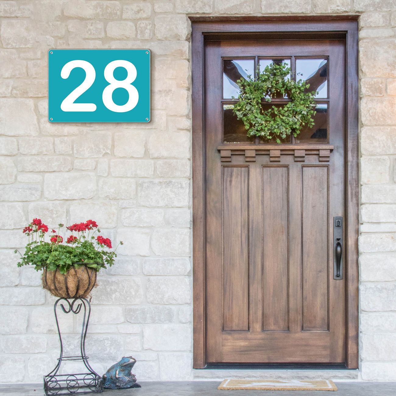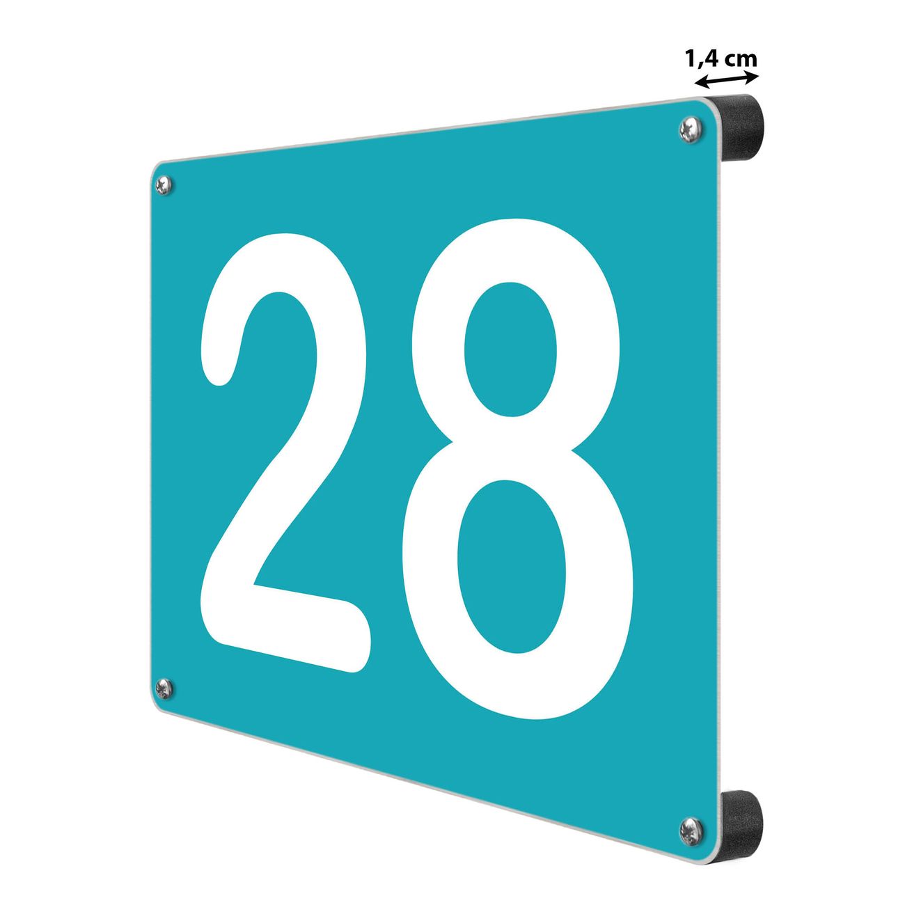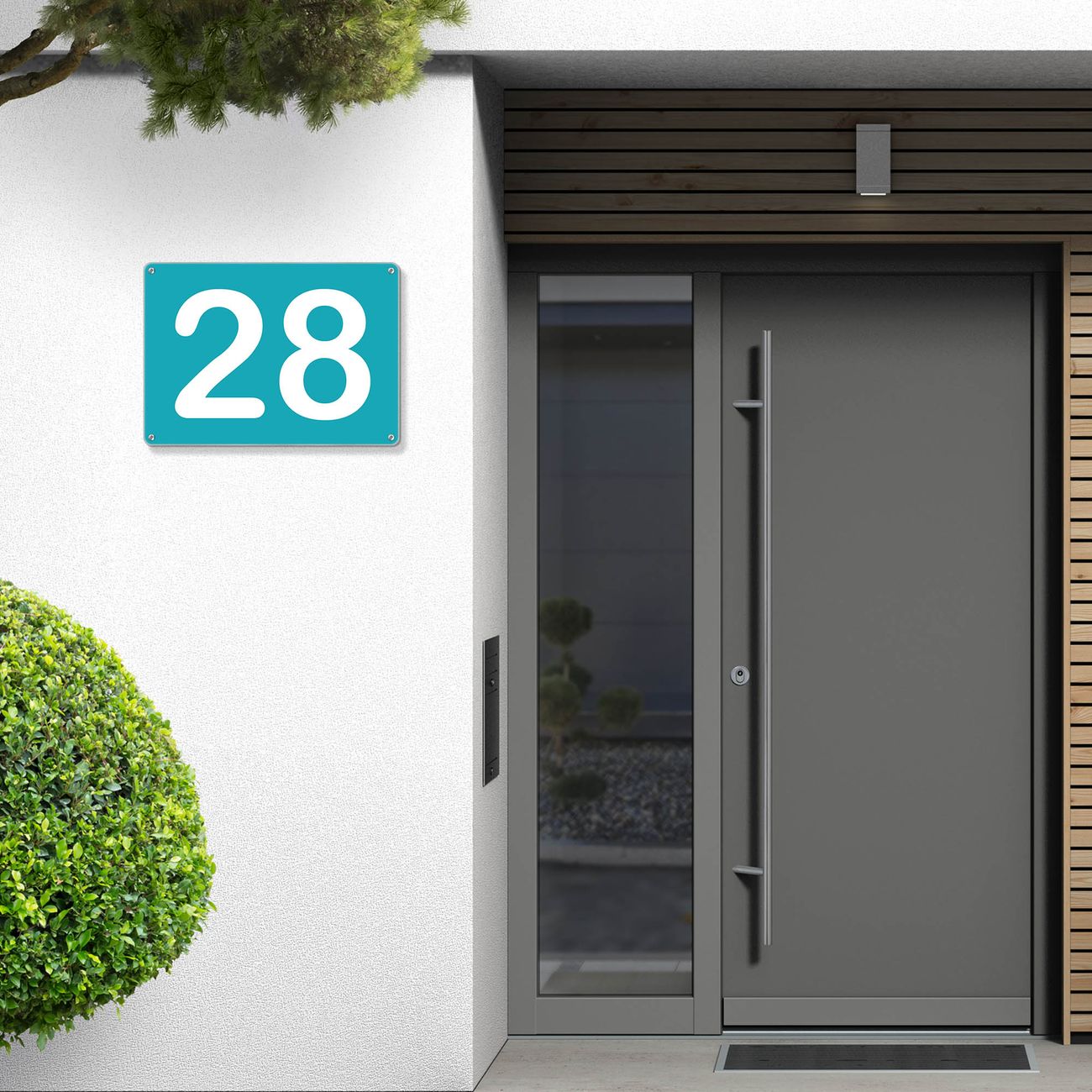 Hausnummernschild Edelstahl personalisierbar Türkis