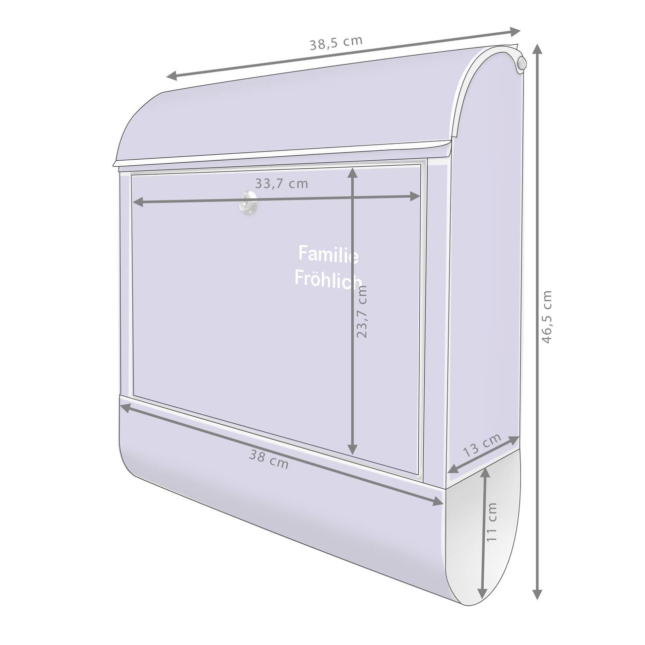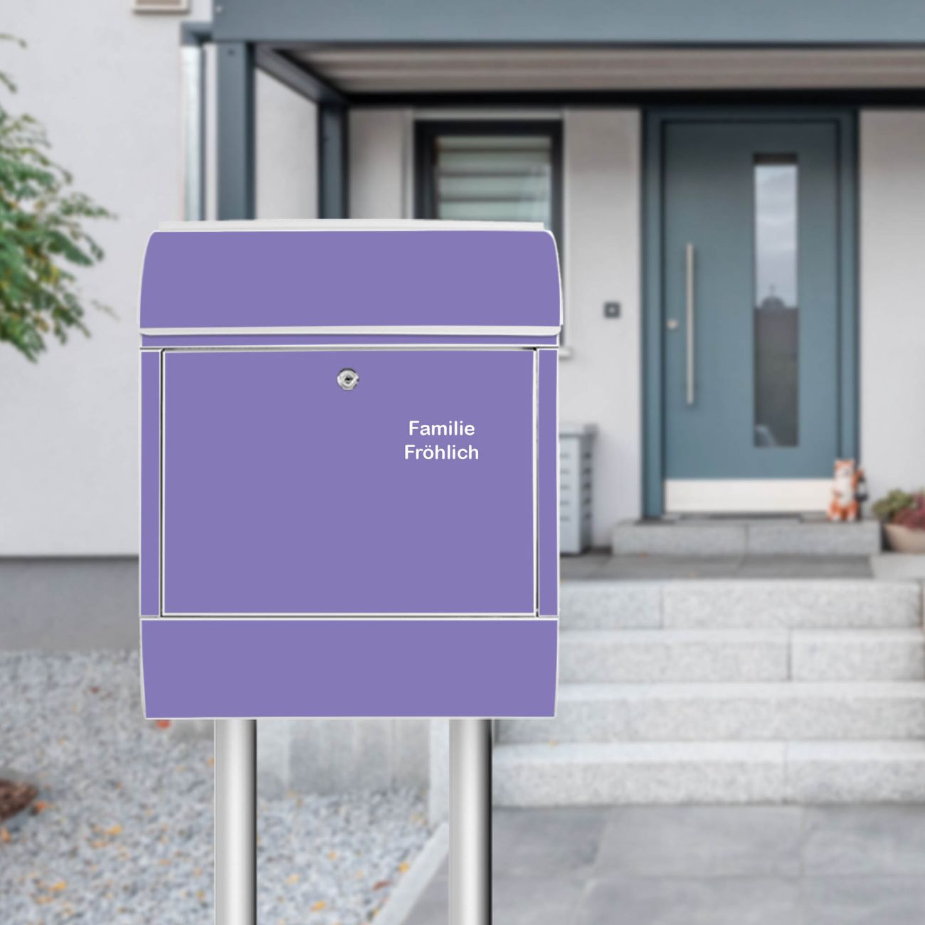 Der banjado Standbriefkasten mit Motiv Farbe Lavendel kombiniert großzügigen Stauraum mit modernem Design. Durch das geräumige Fach finden auch große A4-Sendungen problemlos Platz. Die integrierte Zeitungsrolle sorgt dafür, dass Tageszeitungen und Magazine separat und griffbereit untergebracht sind. Der pulverbeschichtete Standfuß ist farblich passend zum Briefkasten gestaltet und sorgt für ein stimmiges Gesamtbild. Mit dem individuellen Motiv setzen Sie einen optischen Akzent, der sowohl praktisch als auch dekorativ ist.