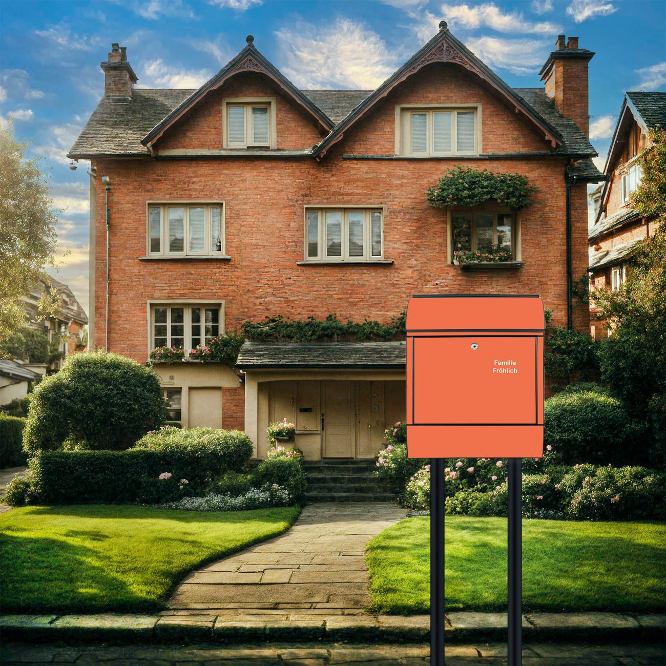 Der banjado Standbriefkasten mit Motiv Farbe Orange kombiniert großzügigen Stauraum mit modernem Design. Durch das geräumige Fach finden auch große A4-Sendungen problemlos Platz. Die integrierte Zeitungsrolle sorgt dafür, dass Tageszeitungen und Magazine separat und griffbereit untergebracht sind. Der pulverbeschichtete Standfuß ist farblich passend zum Briefkasten gestaltet und sorgt für ein stimmiges Gesamtbild. Mit dem individuellen Motiv setzen Sie einen optischen Akzent, der sowohl praktisch als auch dekorativ ist.