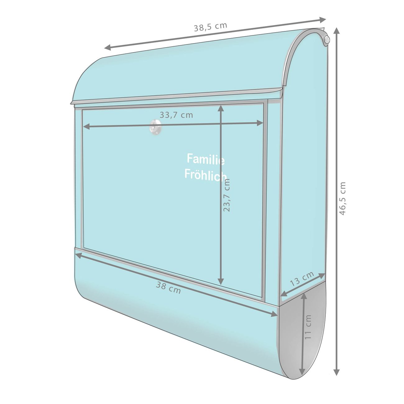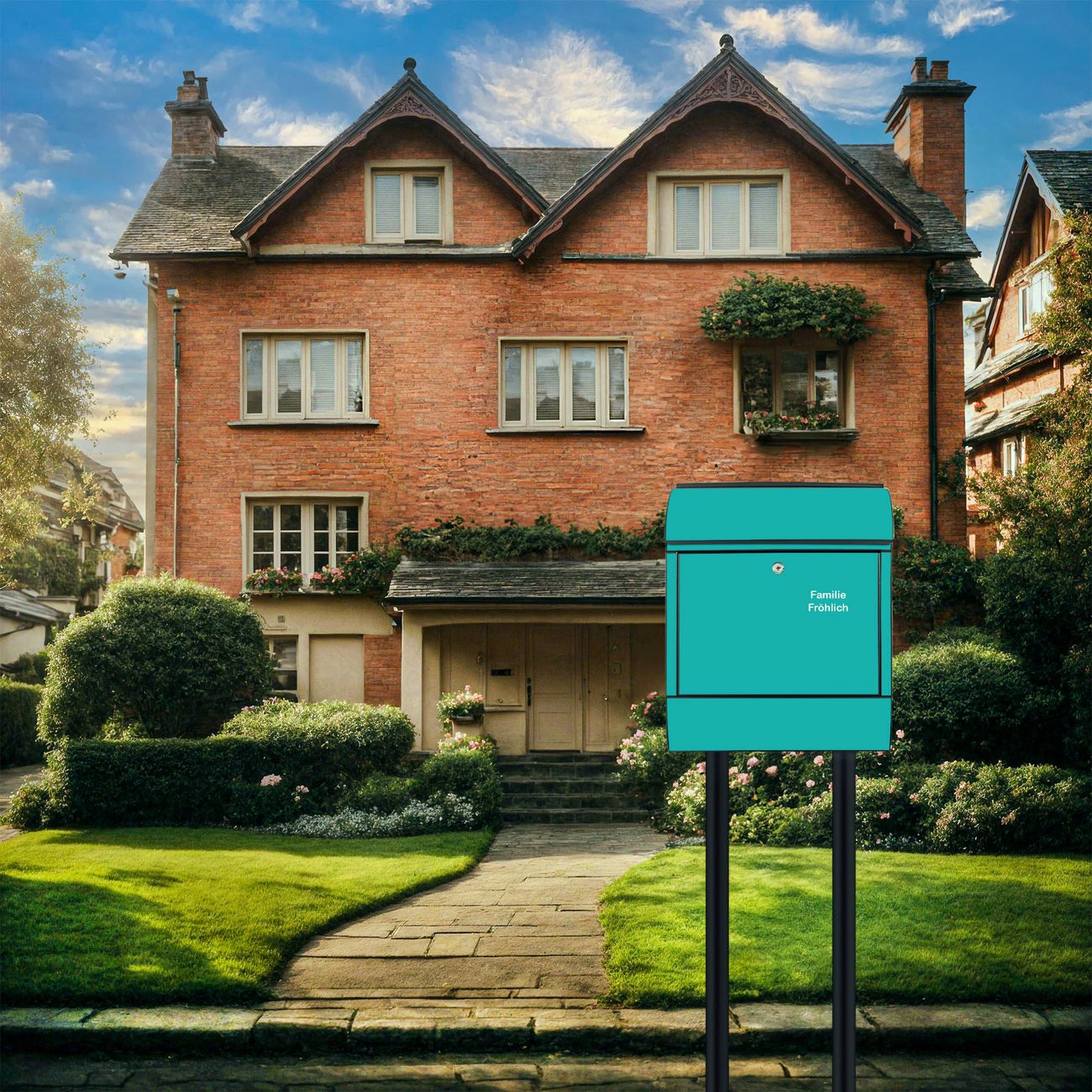 Der banjado Standbriefkasten mit Motiv Farbe Türkis kombiniert großzügigen Stauraum mit modernem Design. Durch das geräumige Fach finden auch große A4-Sendungen problemlos Platz. Die integrierte Zeitungsrolle sorgt dafür, dass Tageszeitungen und Magazine separat und griffbereit untergebracht sind. Der pulverbeschichtete Standfuß ist farblich passend zum Briefkasten gestaltet und sorgt für ein stimmiges Gesamtbild. Mit dem individuellen Motiv setzen Sie einen optischen Akzent, der sowohl praktisch als auch dekorativ ist.