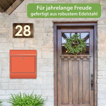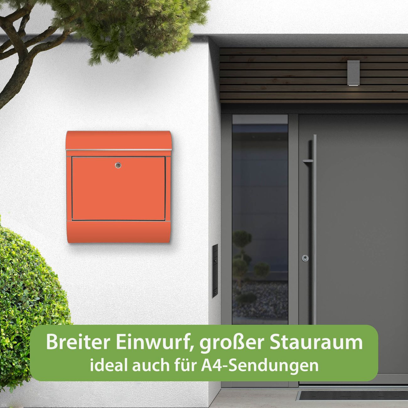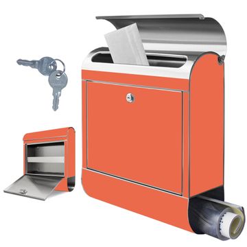 FUNKTION: Der banjado Edelstahl Briefkasten mit Motiv Farbe Orange bietet Ihnen mit seinem Fassungsvermögen genügend Platz auch für große A4 Sendungen. Das integrierte Zeitungsfach eignet sich hervorragend um unkompliziert die Tageszeitung zu fassen. Auf Wunsch können Sie bei uns den passenden Ständer kaufen und so aus dem Wandbriefkasten einen Standbriefkasten machen. DESIGN: Der Motivbriefkasten hat ein sehr ansprechendes und ausgefallenes Design, damit entlocken Sie Ihren Nachbarn und dem Postboten ein Lächeln. Heben Sie Sich ab von der tristen grauen Masse ohne auf Funktionalität zu verzichten. DETAILS: Der Design Briefkasten mit Motiv Farbe Orange besteht aus hochwertigem 18/0 Edelstahl. Das Motiv besteht aus einer wetter- und UV-resistenten Folie, die mit einem Schutzlaminat überzogen ist. Der Briefkasten wird mit Montagematerial und zwei Schlüsseln geliefert. NUTZEN: Sie können diesen Briefkasten sowohl als Wandbriefkasten montieren oder einen passenden Ständer auswählen und als Standbriefkasten einbetonieren. Die Größe bietet genügend Platz für Sendungen aller Art, das hochwertige Edelstahl ist rostfrei und die Motivfolie absolut wetterfest. SCHUTZ: Um Ihre Post optimal vor Witterungseinflüssen wie Starkregen zu schützen, empfehlen wir, den Briefkasten geschützt anzubringen. BANJADO: Ihr Briefkasten wird in Sachsen in einer kleinen Manufaktur von Hand veredelt. Die Motivfolie ist lösungsmittelfrei und schutzlaminiert, dies sorgt für einen langen Halt. Wir legen großen Wert auf die Verbindung von Funktionalität und Design. Sie erhalten Handarbeit aus Sachsen.