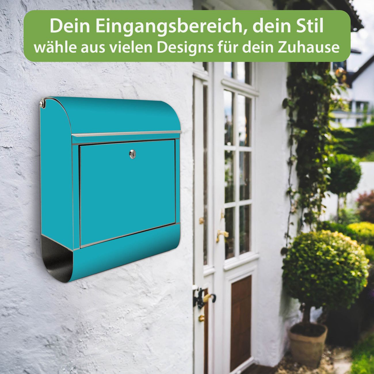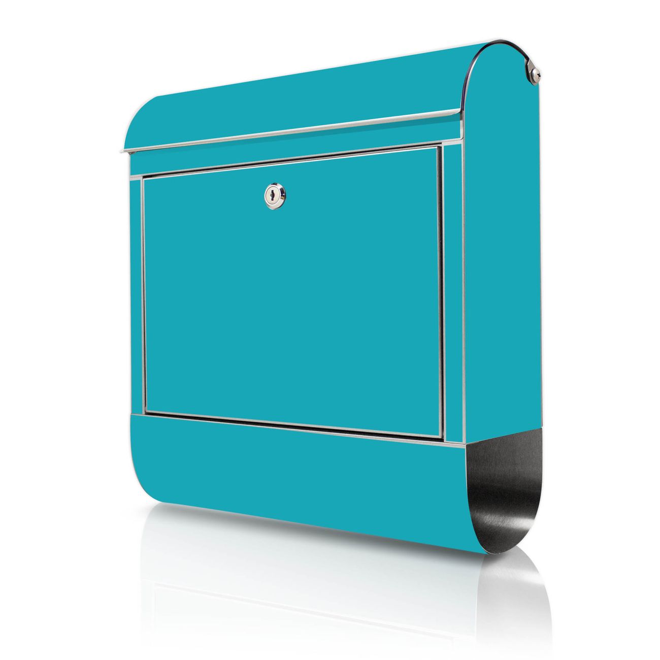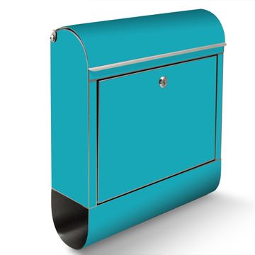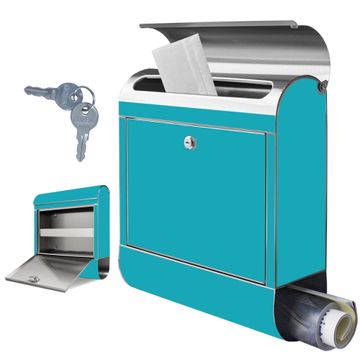 FUNKTION: Der banjado Edelstahl Briefkasten mit Motiv Farbe Türkis bietet Ihnen mit seinem Fassungsvermögen genügend Platz auch für große A4 Sendungen. Das integrierte Zeitungsfach eignet sich hervorragend um unkompliziert die Tageszeitung zu fassen. Auf Wunsch können Sie bei uns den passenden Ständer kaufen und so aus dem Wandbriefkasten einen Standbriefkasten machen. DESIGN: Der Motivbriefkasten hat ein sehr ansprechendes und ausgefallenes Design, damit entlocken Sie Ihren Nachbarn und dem Postboten ein Lächeln. Heben Sie Sich ab von der tristen grauen Masse ohne auf Funktionalität zu verzichten. DETAILS: Der Design Briefkasten mit Motiv Farbe Türkis besteht aus hochwertigem 18/0 Edelstahl. Das Motiv besteht aus einer wetter- und UV-resistenten Folie, die mit einem Schutzlaminat überzogen ist. Der Briefkasten wird mit Montagematerial und zwei Schlüsseln geliefert. NUTZEN: Sie können diesen Briefkasten sowohl als Wandbriefkasten montieren oder einen passenden Ständer auswählen und als Standbriefkasten einbetonieren. Die Größe bietet genügend Platz für Sendungen aller Art, das hochwertige Edelstahl ist rostfrei und die Motivfolie absolut wetterfest. SCHUTZ: Um Ihre Post optimal vor Witterungseinflüssen wie Starkregen zu schützen, empfehlen wir, den Briefkasten geschützt anzubringen. BANJADO: Ihr Briefkasten wird in Sachsen in einer kleinen Manufaktur von Hand veredelt. Die Motivfolie ist lösungsmittelfrei und schutzlaminiert, dies sorgt für einen langen Halt. Wir legen großen Wert auf die Verbindung von Funktionalität und Design. Sie erhalten Handarbeit aus Sachsen.
