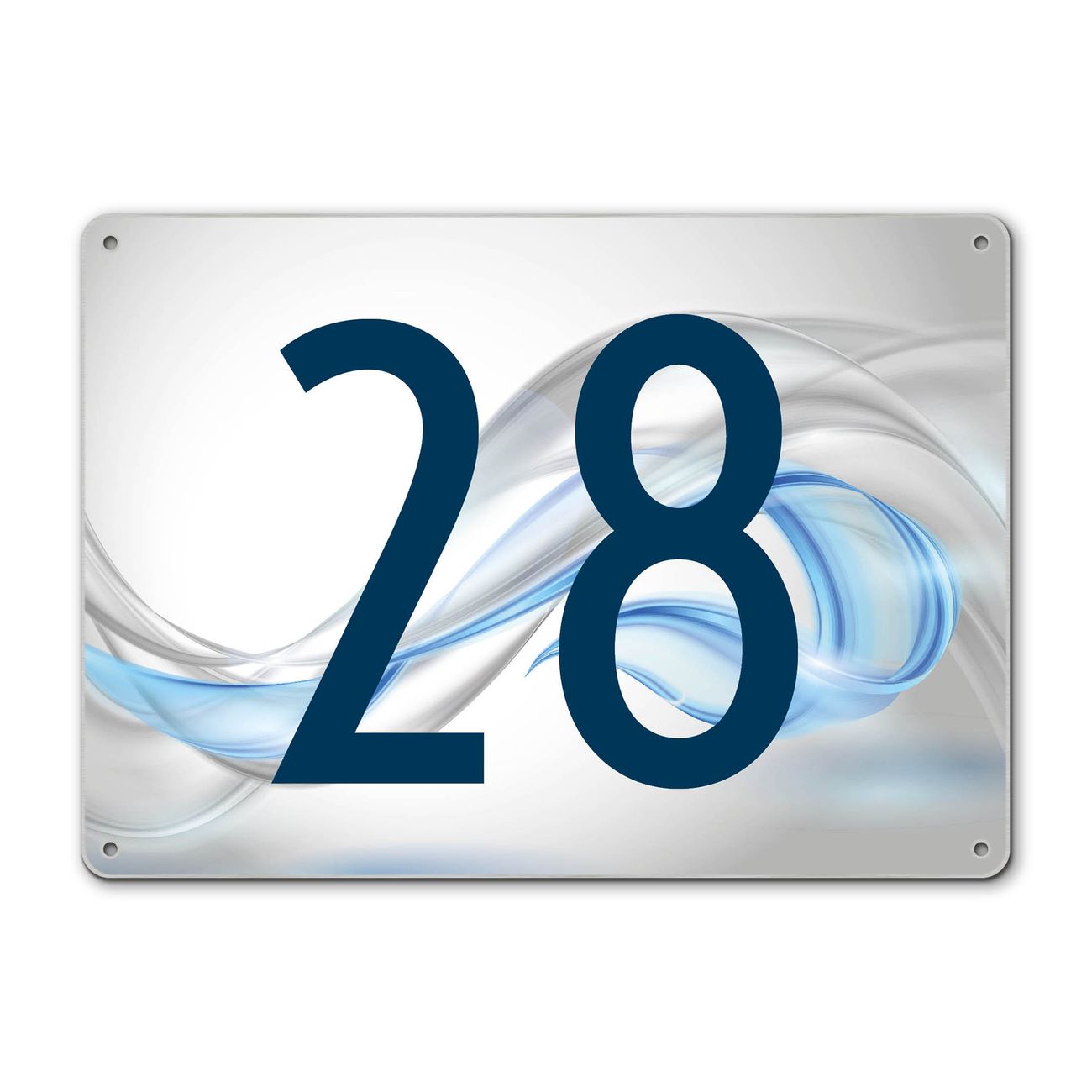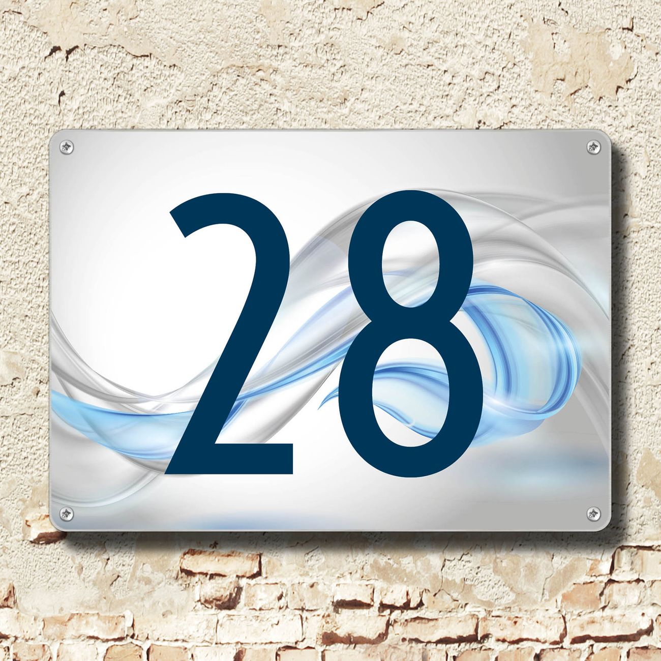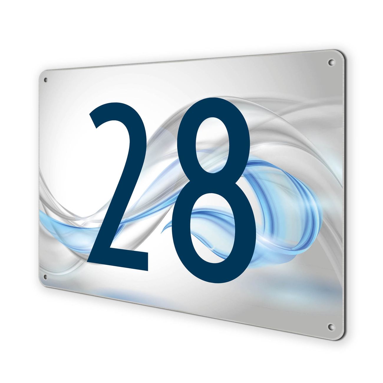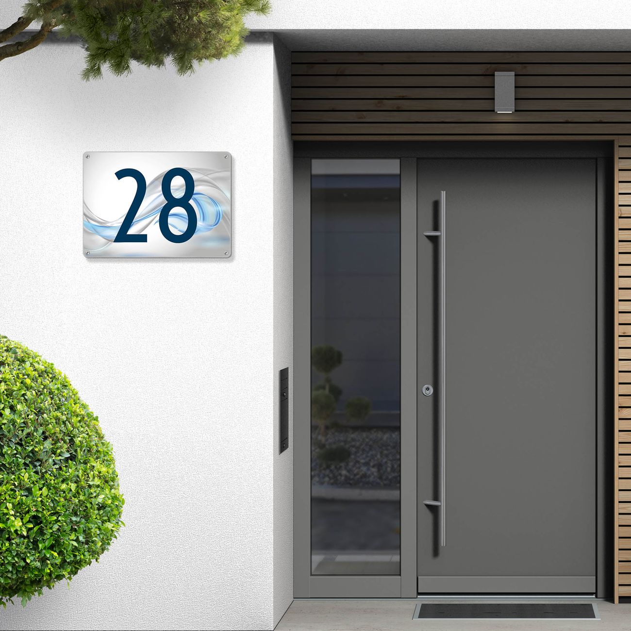 Hausnummernschild Edelstahl personalisierbar Blauer Schleier