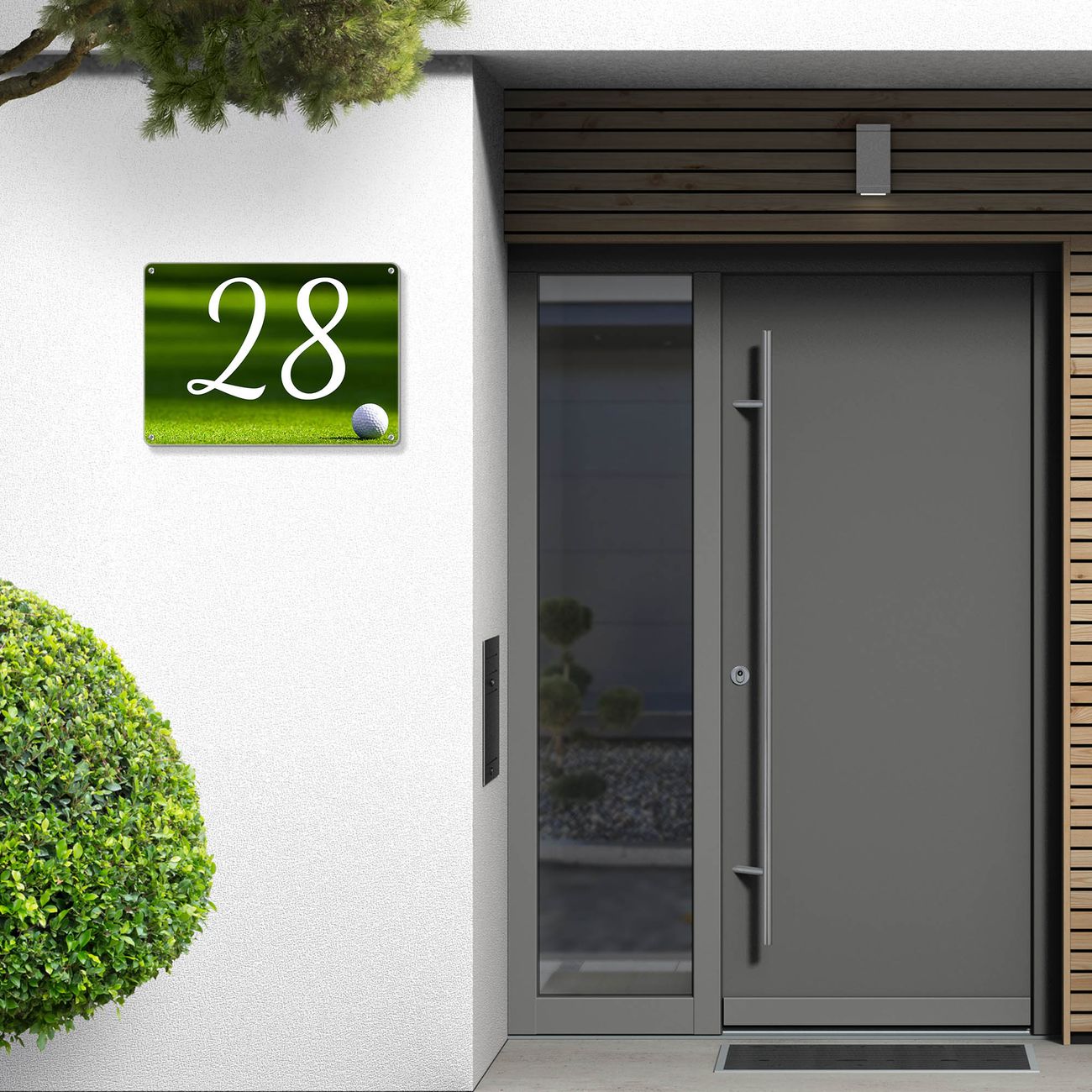 Hausnummernschild Edelstahl personalisierbar Einsamer Golfball