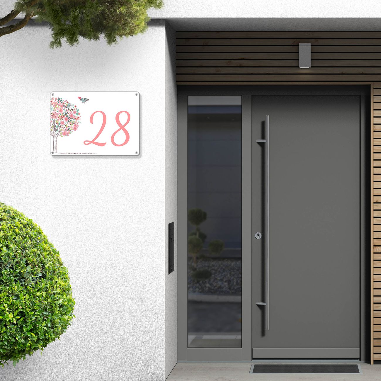 Hausnummernschild Edelstahl personalisierbar Frühlingsgefühle