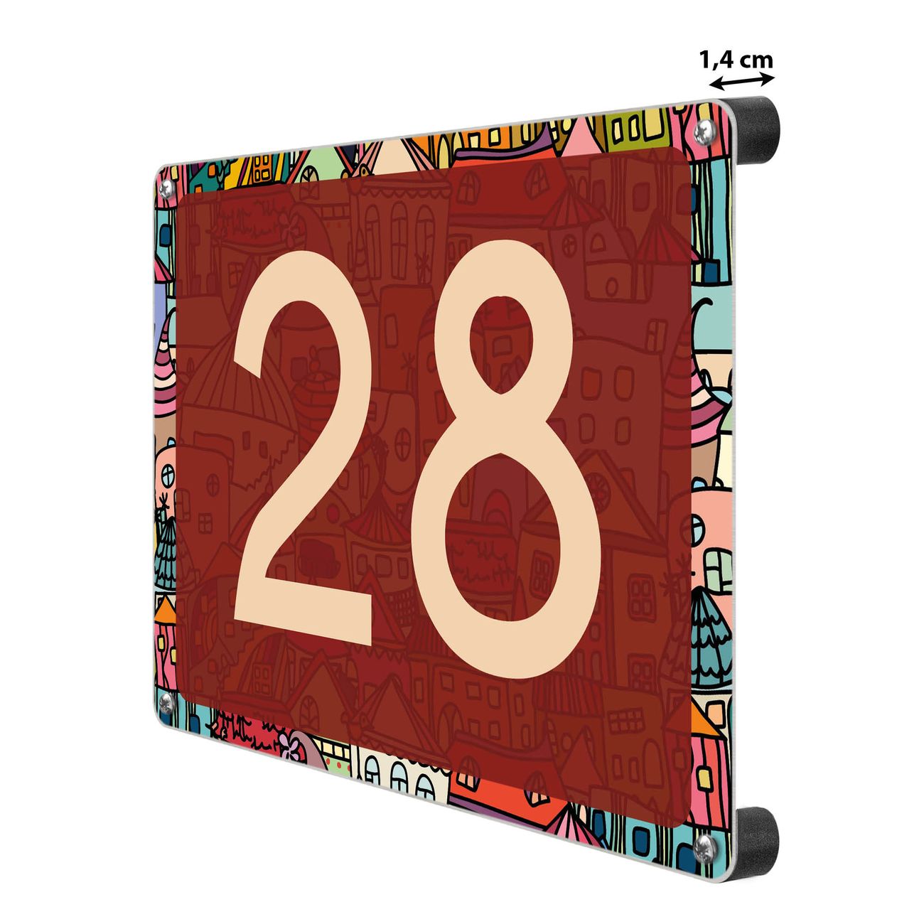 Das banjado Hausnummer Schild ist mit 4 Schrauben einfach am Haus anzubringen und zeigt dank der Größe stilsicher Ihre Hausnummer oder auch individuell Hausnummer mit Straßennamen. Das Hausschild personalisiert können Sie ganz auf Ihre Wünsche anpassen. Wir bieten verschiedenste Motive an. Dazu können Sie das Schild mit Ihrer Hausnummer anpassen.