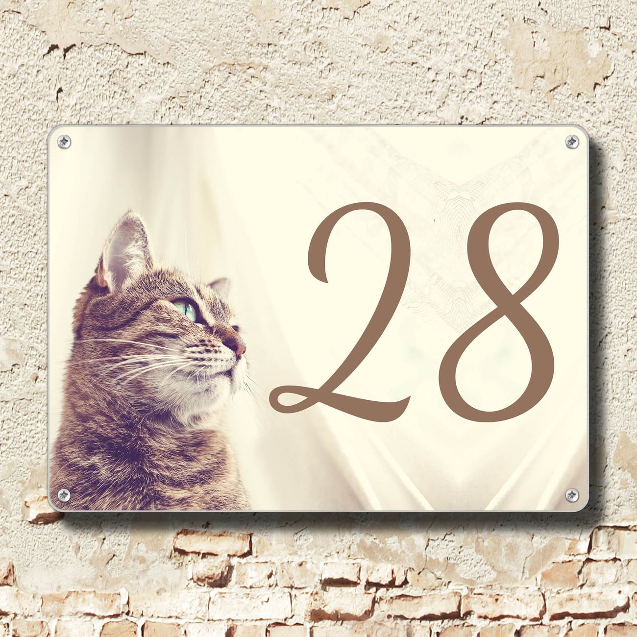 Das banjado Hausnummer Schild ist mit 4 Schrauben einfach am Haus anzubringen und zeigt dank der Größe stilsicher Ihre Hausnummer oder auch individuell Hausnummer mit Straßennamen. Das Hausschild personalisiert können Sie ganz auf Ihre Wünsche anpassen. Wir bieten verschiedenste Motive an. Dazu können Sie das Schild mit Ihrer Hausnummer anpassen.