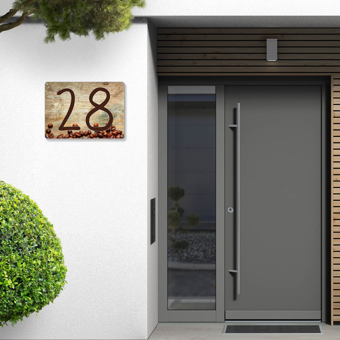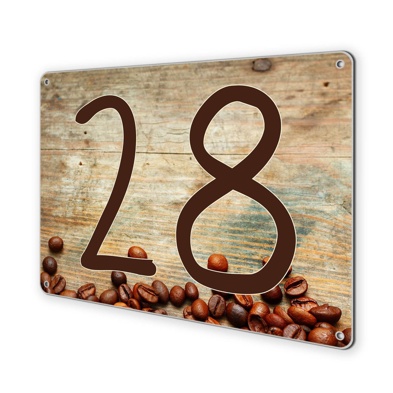 Hausnummernschild Edelstahl personalisierbar Kaffeebohnen