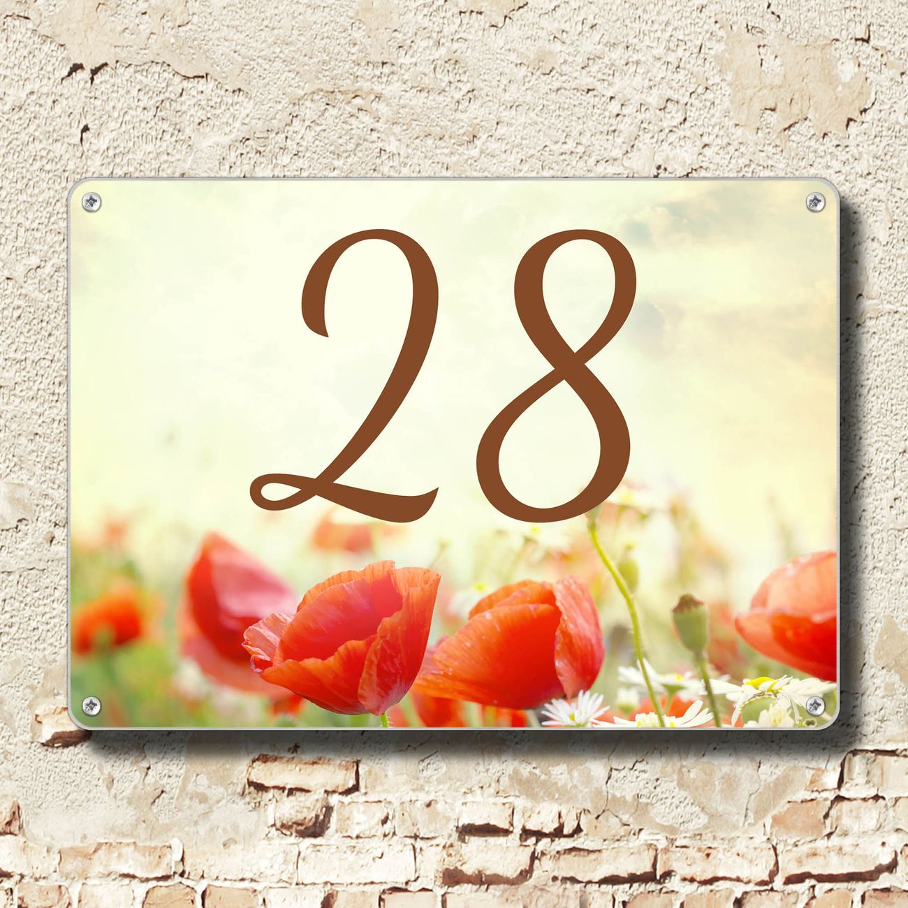 Hausnummernschild Edelstahl personalisierbar Kamille Und Mohn