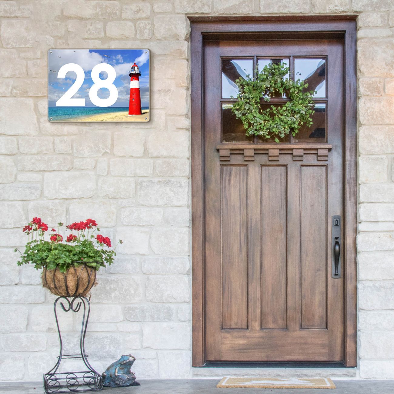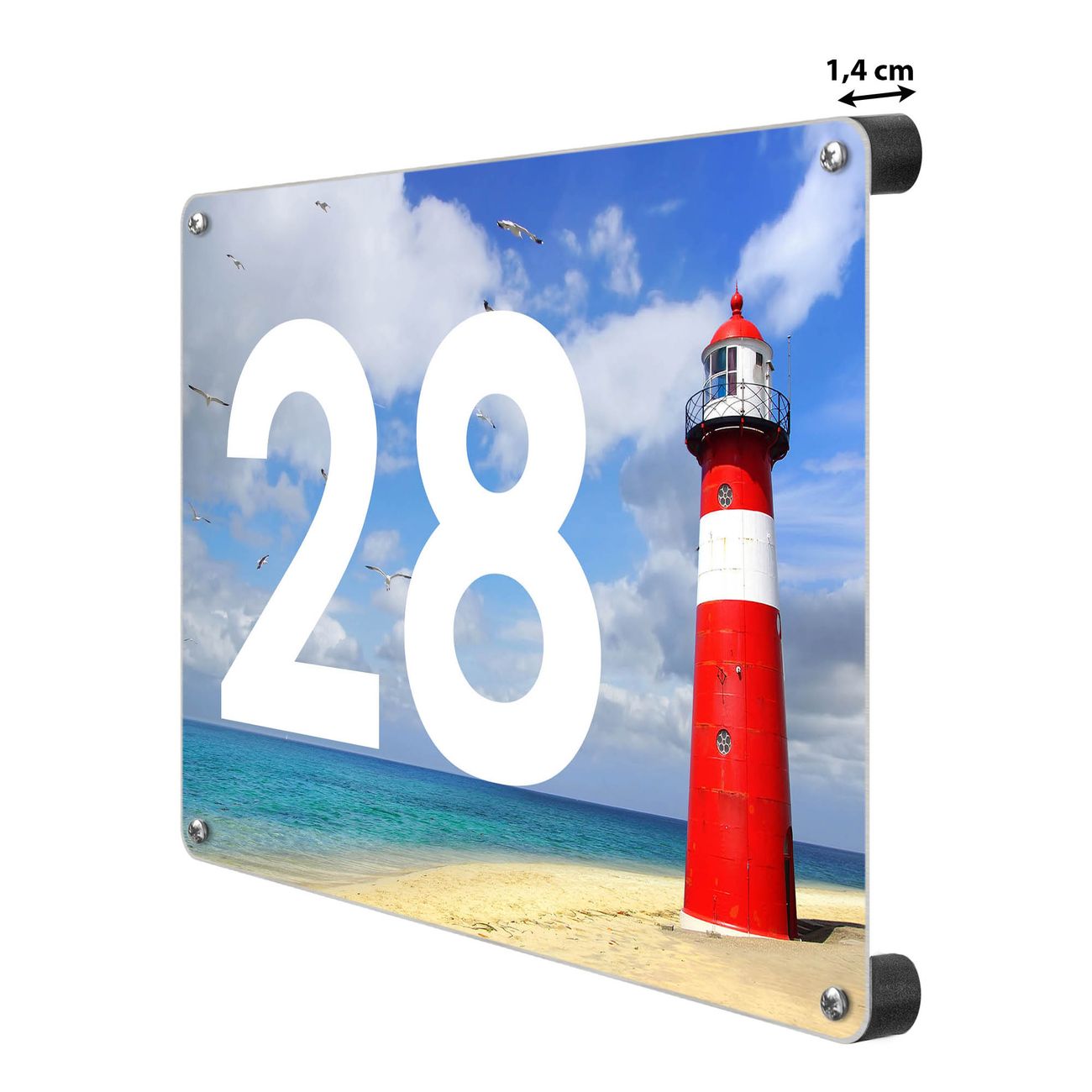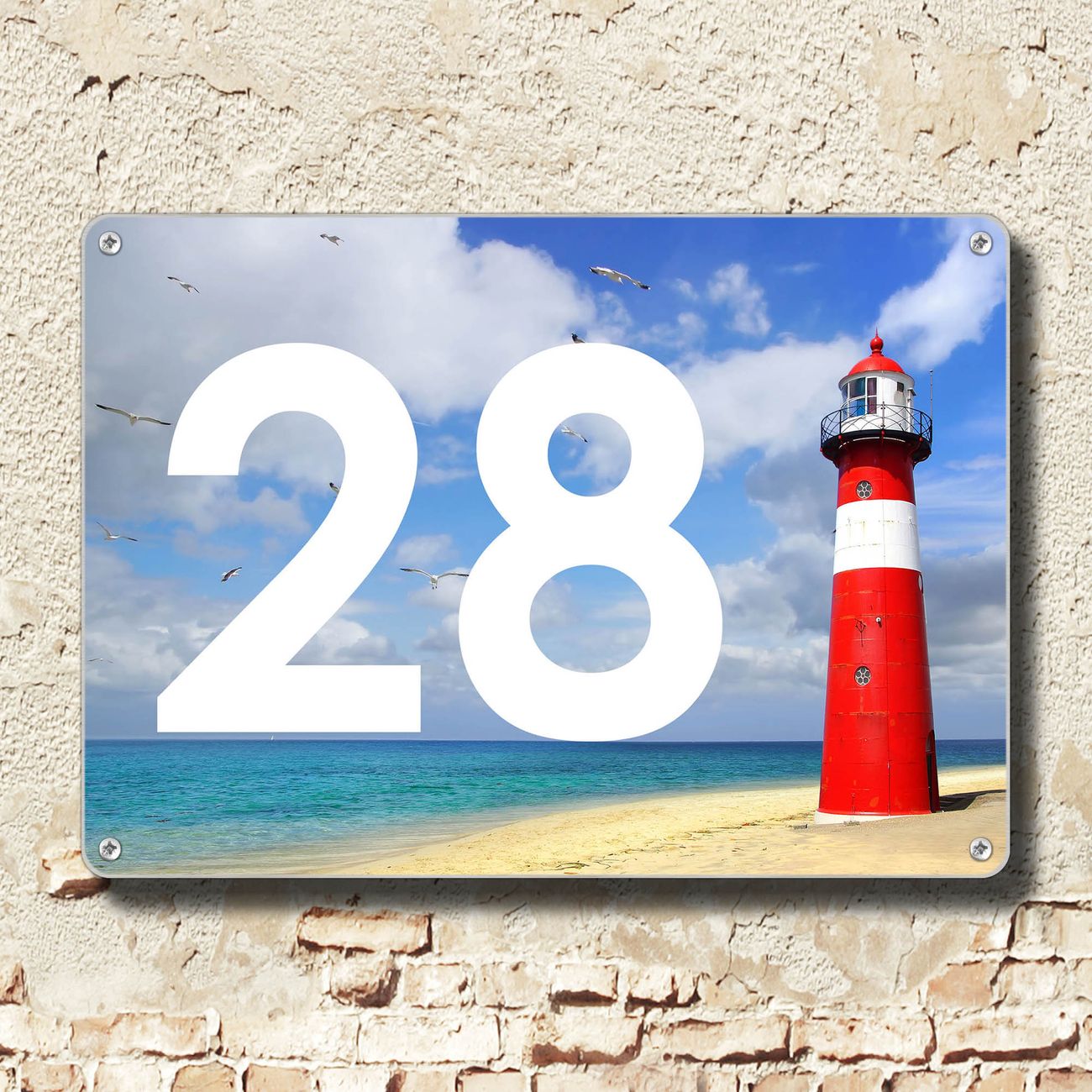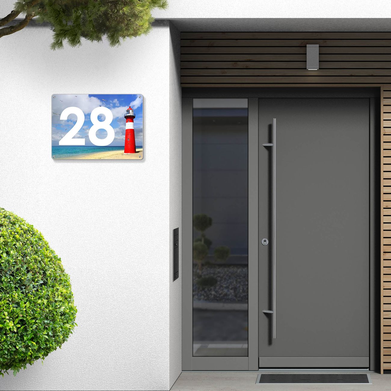 Das banjado Hausnummer Schild ist mit 4 Schrauben einfach am Haus anzubringen und zeigt dank der Größe stilsicher Ihre Hausnummer oder auch individuell Hausnummer mit Straßennamen. Das Hausschild personalisiert können Sie ganz auf Ihre Wünsche anpassen. Wir bieten verschiedenste Motive an. Dazu können Sie das Schild mit Ihrer Hausnummer anpassen.