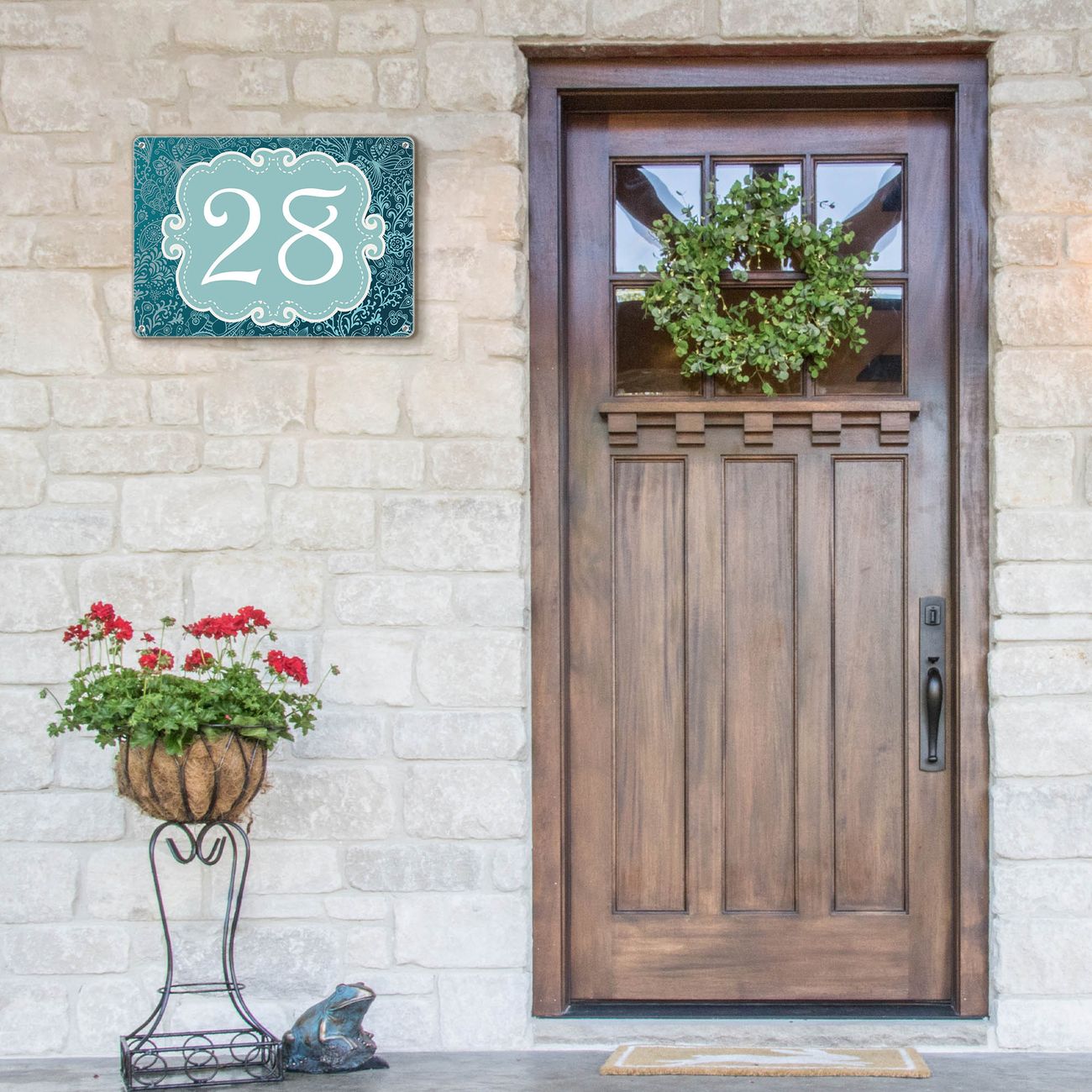 Das banjado Hausnummer Schild ist mit 4 Schrauben einfach am Haus anzubringen und zeigt dank der Größe stilsicher Ihre Hausnummer oder auch individuell Hausnummer mit Straßennamen. Das Hausschild personalisiert können Sie ganz auf Ihre Wünsche anpassen. Wir bieten verschiedenste Motive an. Dazu können Sie das Schild mit Ihrer Hausnummer anpassen.