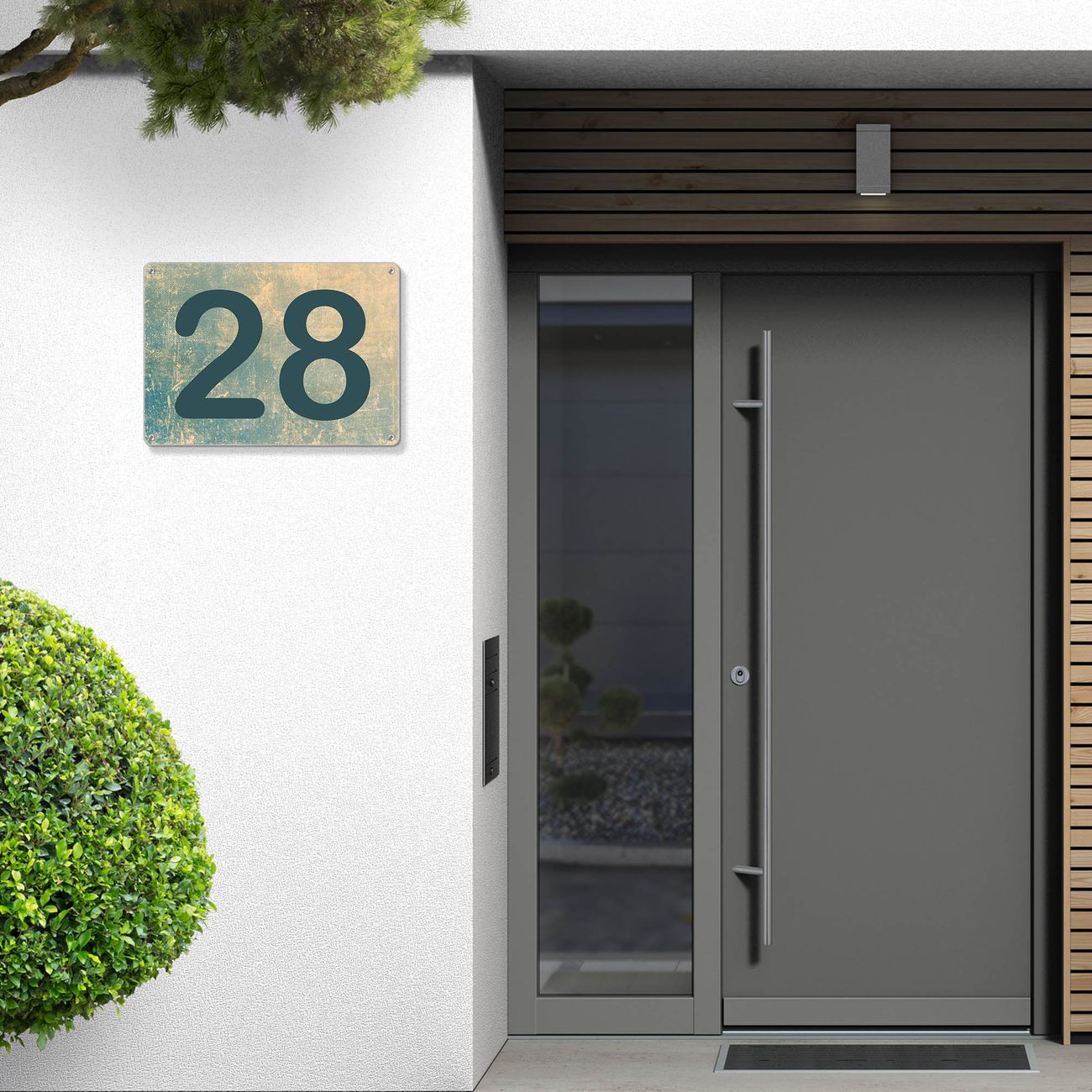 Das banjado Hausnummer Schild ist mit 4 Schrauben einfach am Haus anzubringen und zeigt dank der Größe stilsicher Ihre Hausnummer oder auch individuell Hausnummer mit Straßennamen. Das Hausschild personalisiert können Sie ganz auf Ihre Wünsche anpassen. Wir bieten verschiedenste Motive an. Dazu können Sie das Schild mit Ihrer Hausnummer anpassen.