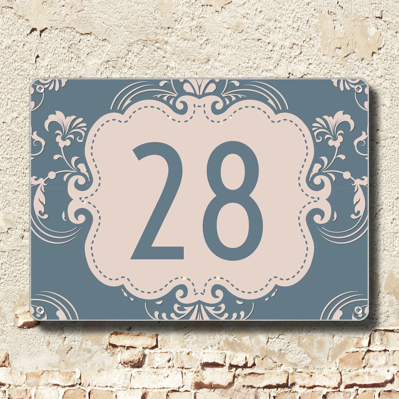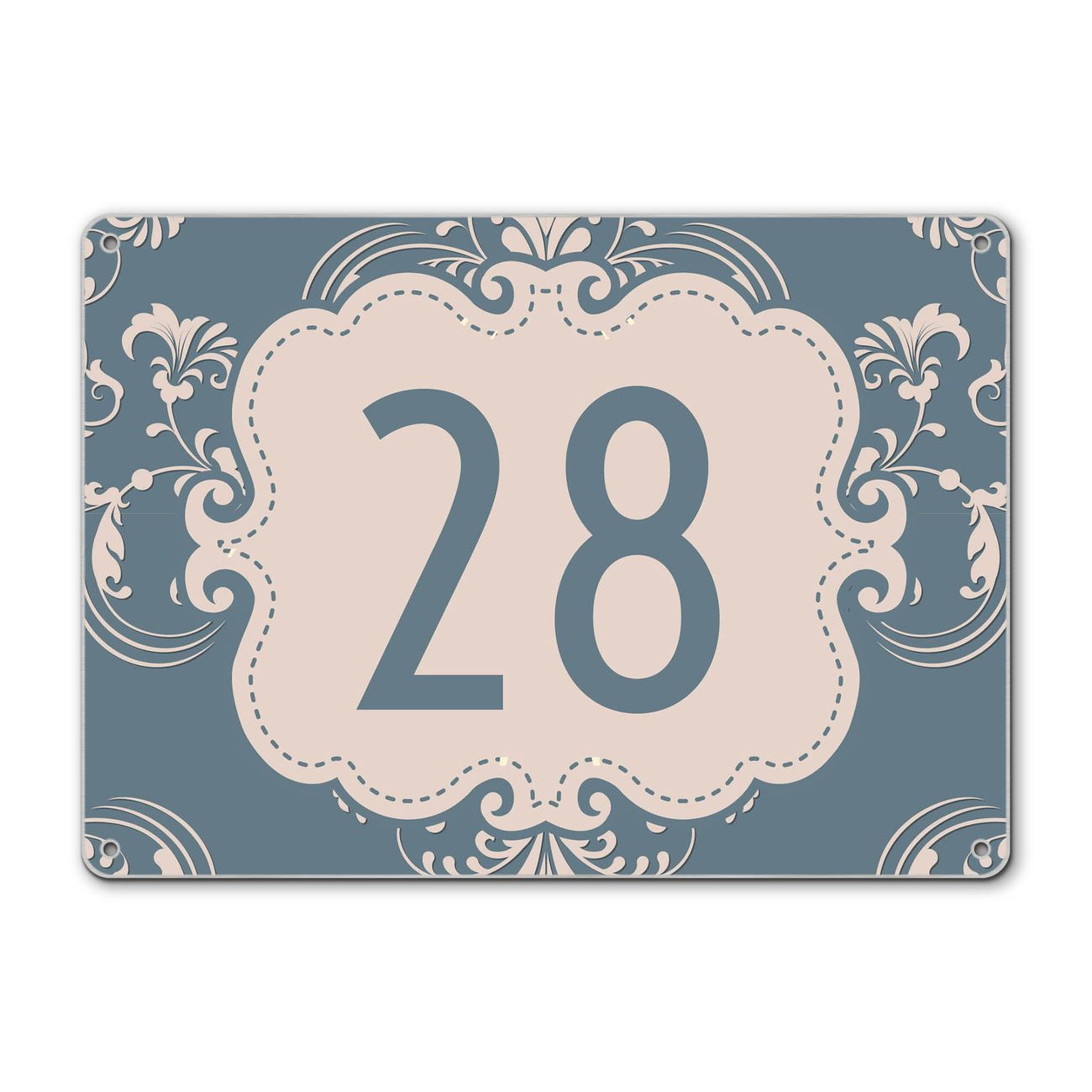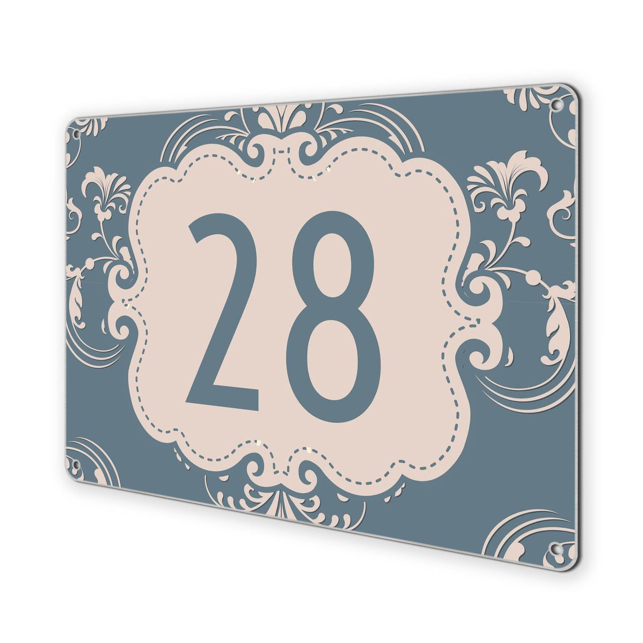 Hausnummernschild Edelstahl personalisierbar Royal Creme Blau
