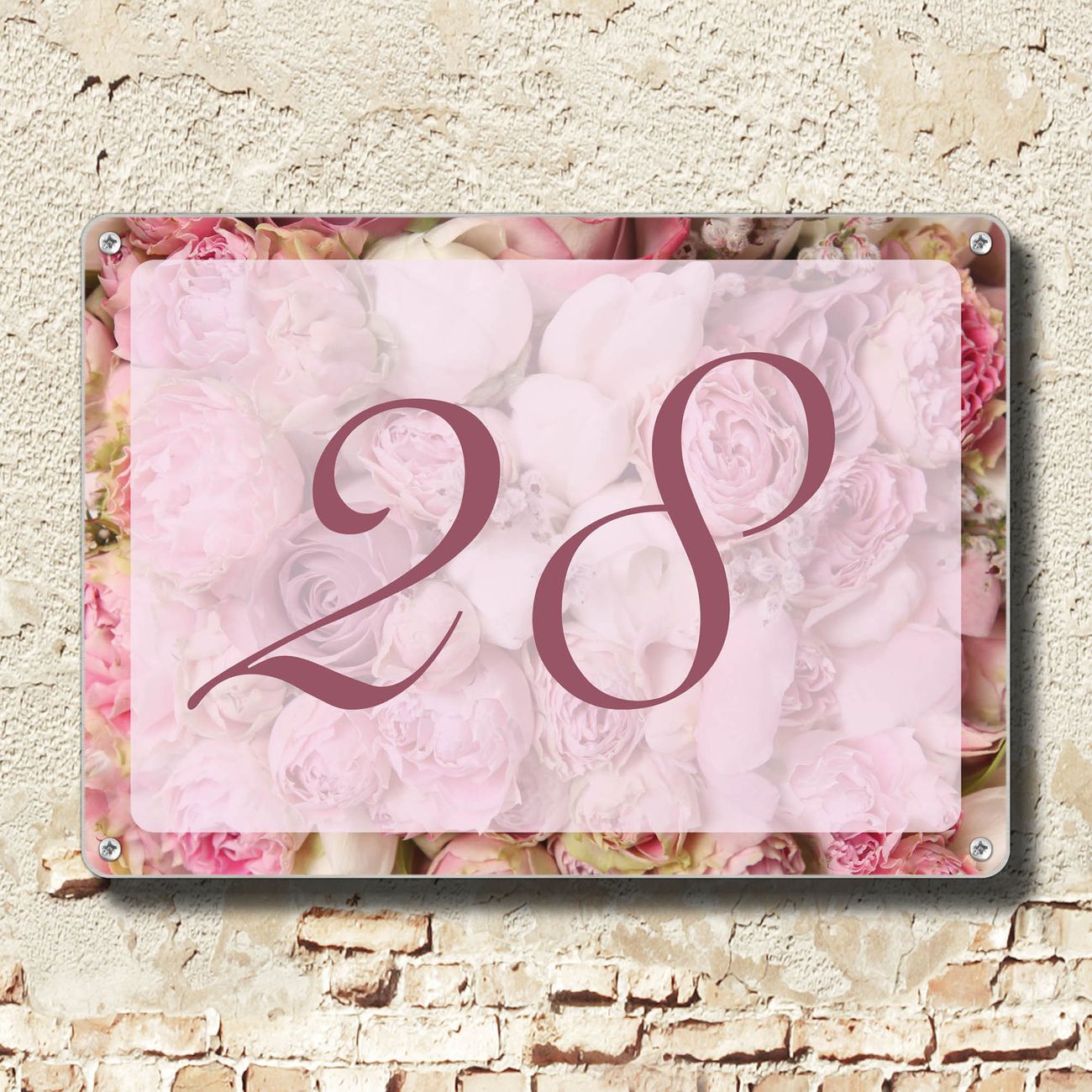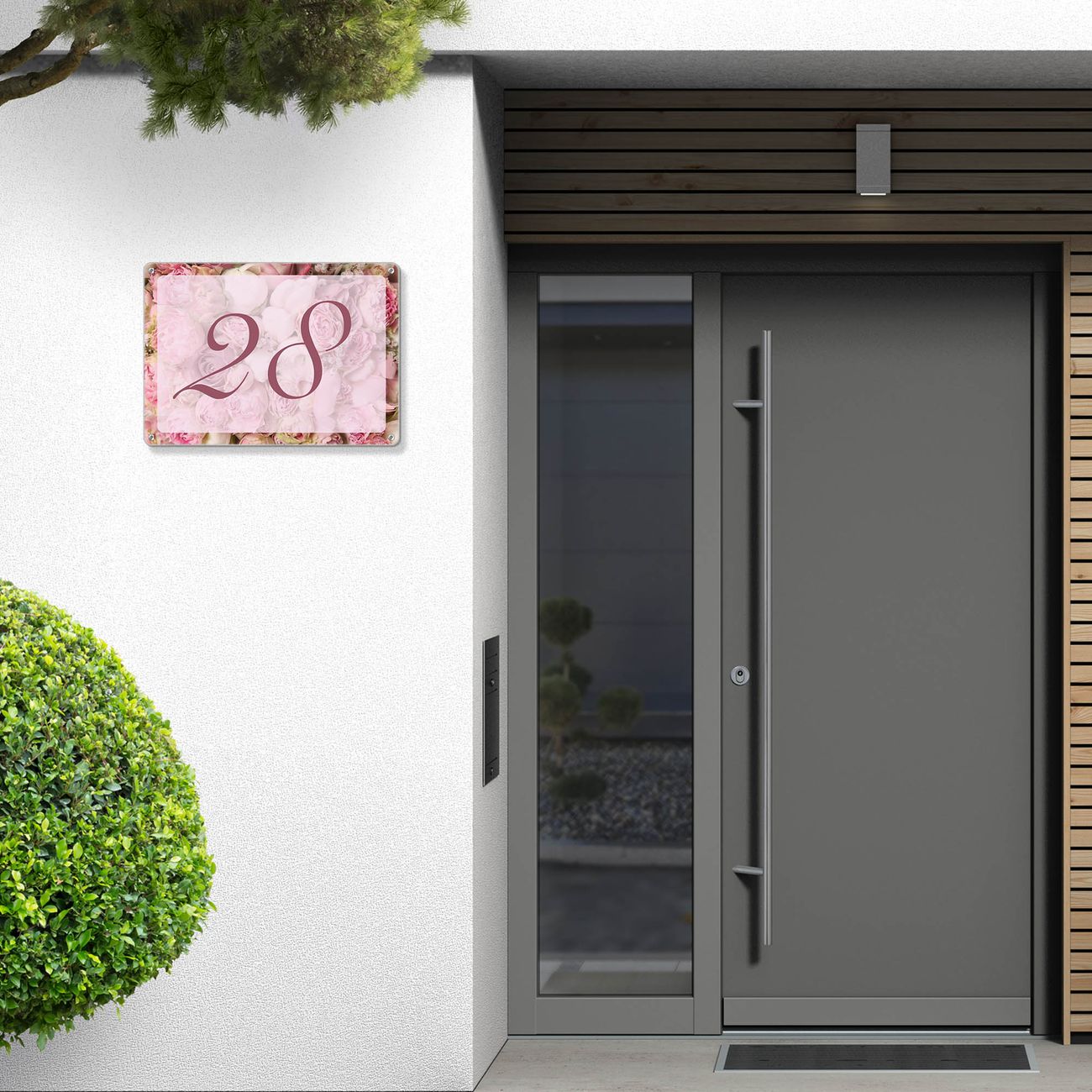 Hausnummernschild Edelstahl personalisierbar Strauss Rosen
