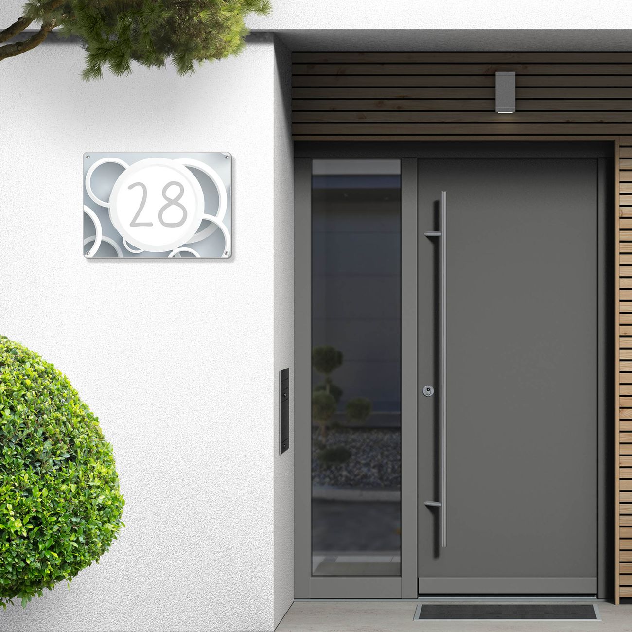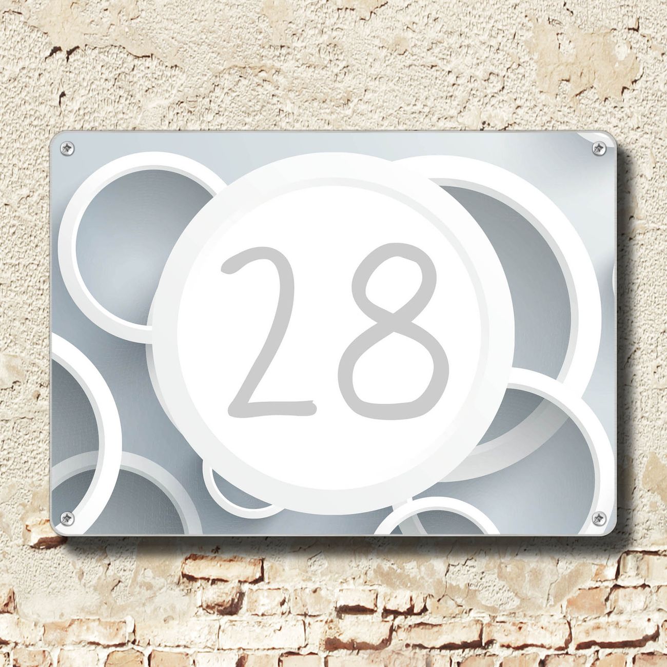 Hausnummernschild Edelstahl personalisierbar Weiße Ringe
