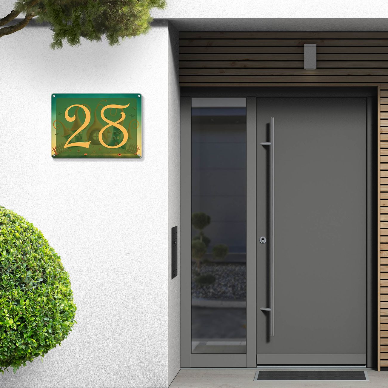 Das banjado Hausnummer Schild ist mit 4 Schrauben einfach am Haus anzubringen und zeigt dank der Größe stilsicher Ihre Hausnummer oder auch individuell Hausnummer mit Straßennamen. Das Hausschild personalisiert können Sie ganz auf Ihre Wünsche anpassen. Wir bieten verschiedenste Motive an. Dazu können Sie das Schild mit Ihrer Hausnummer anpassen.