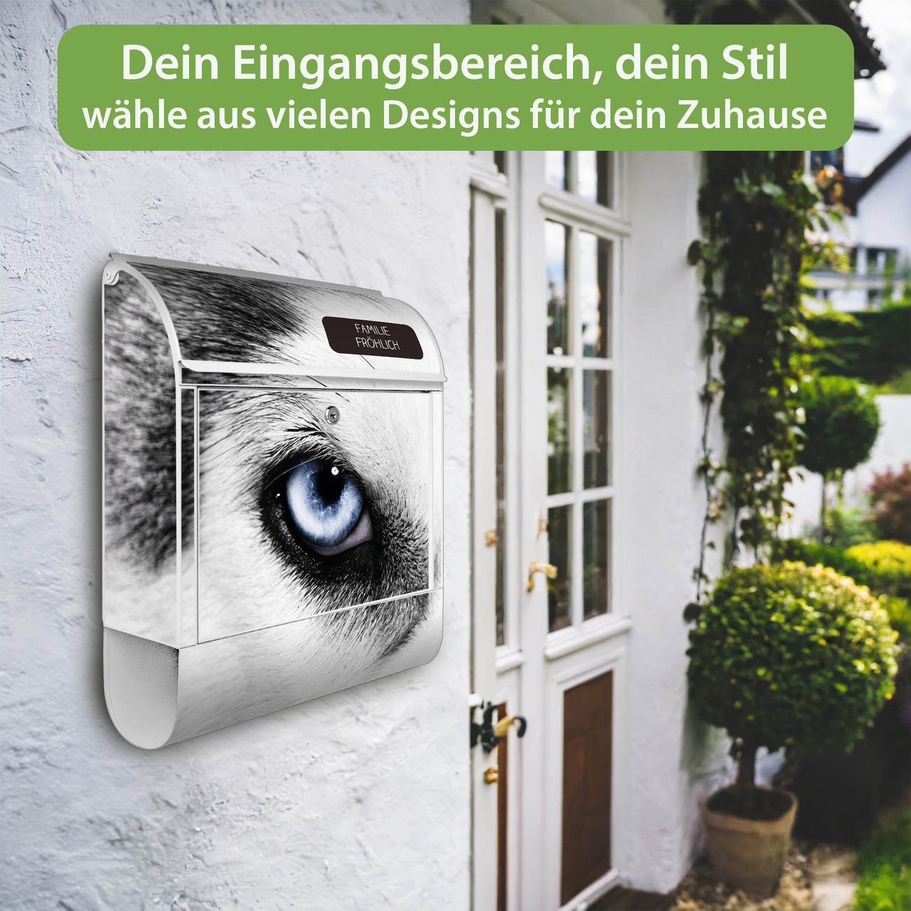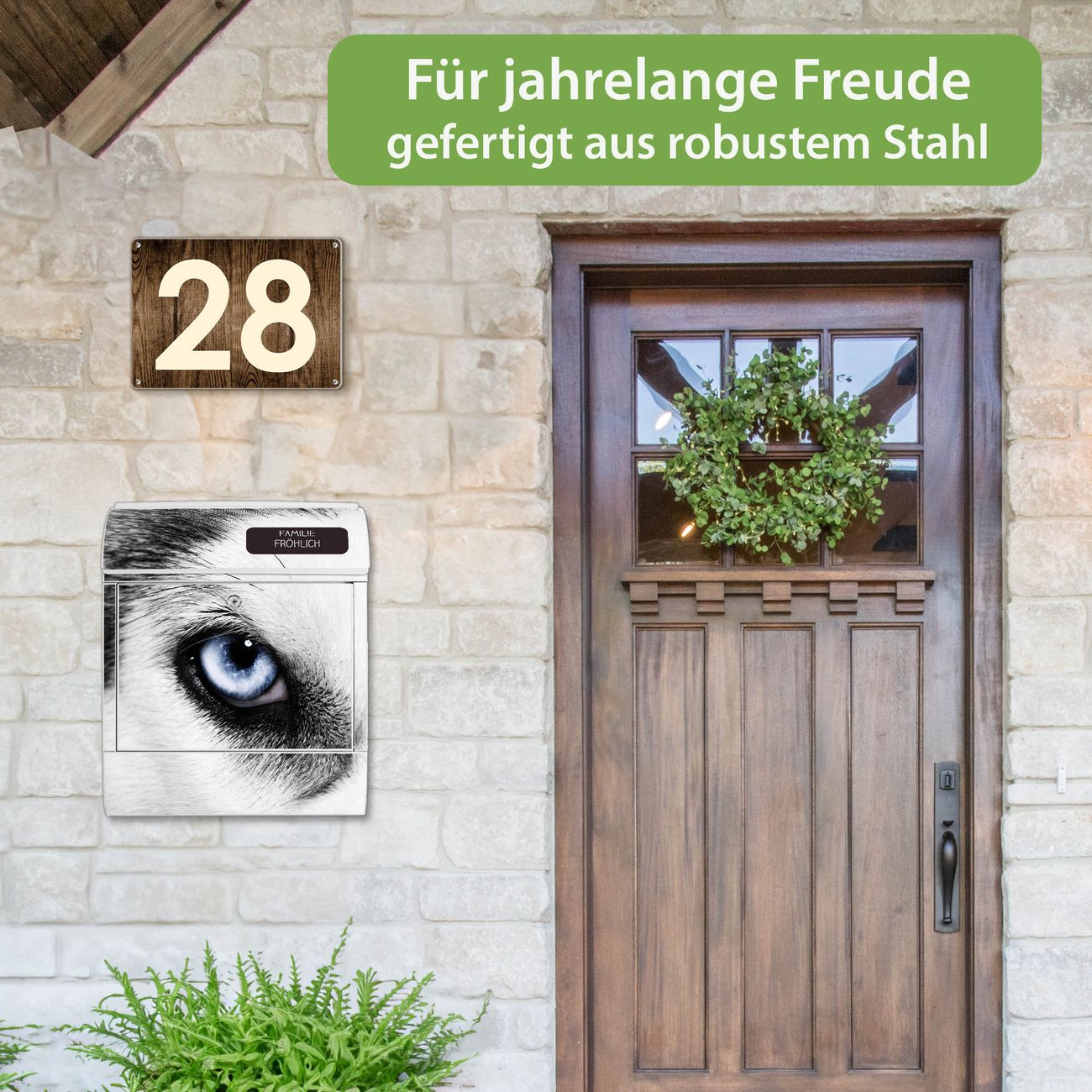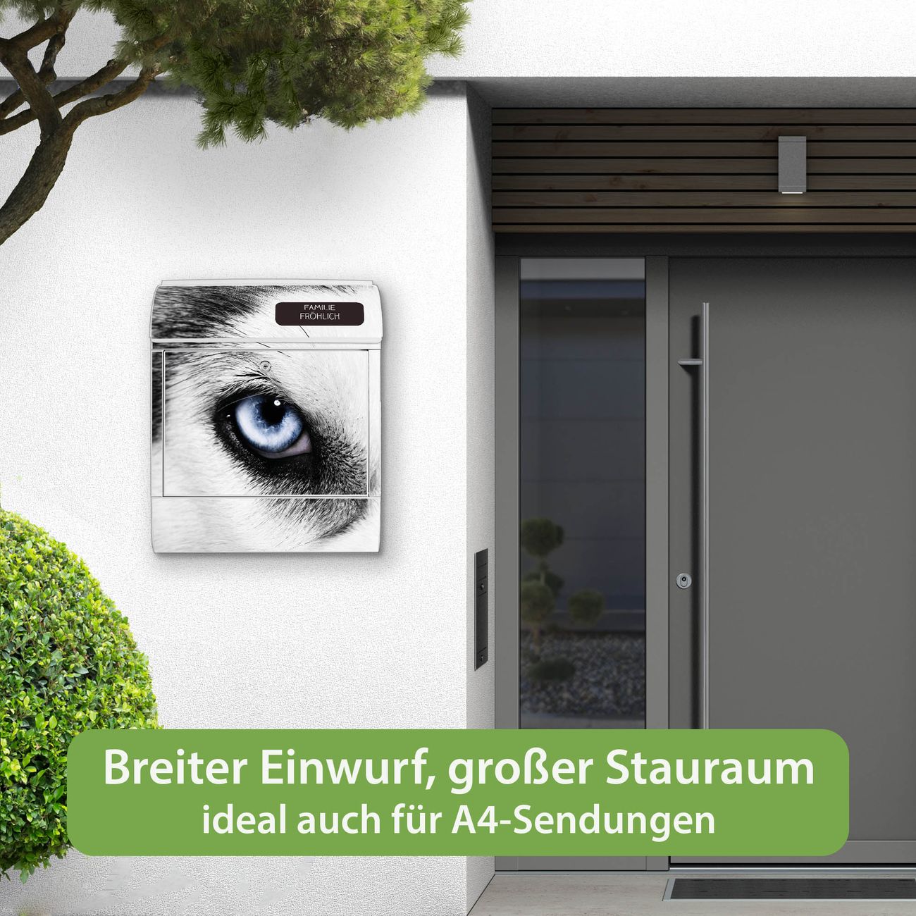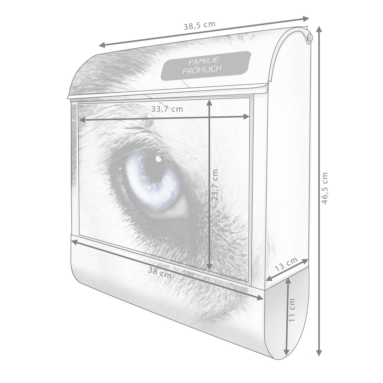 DESIGN: Der Postkasten mit Motiv Motiv Anouk hat ein sehr ansprechendes und ausgefallenes Design, damit entlocken Sie Ihren Nachbarn und dem Postboten ein Lächeln. Heben Sie Sich von der tristen grauen Masse ab, ohne auf Funktionalität zu verzichten. DETAILS: Der Postkasten besteht aus pulverbeschichtetem Stahl. Er ist 38x46x12,5cm groß. Das Motiv besteht aus einer wetter- und UV-resistenten Folie, die mit einem Schutzlaminat überzogen ist, sodass der Briefkasten zusätzlich vor Kratzern geschützt ist. Der Briefkasten wird mit Montagematerial, zusätzlich zwei Schlüssel sowie einer Bohrschablone geliefert. NUTZEN: Sie können diesen Briefkasten sowohl als Wandbriefkasten montieren oder einen passenden Ständer kaufen und als Standbriefkasten einbetonieren. Die Größe bietet genügend Platz für Sendungen aller Art, der Einwurf fasst auch größere A4 Sendungen. BANJADO: Ihr Briefkasten wird in Sachsen in einer kleinen Manufaktur von Hand veredelt. Die Motivfolie ist lösungsmittelfrei und schutzlaminiert für einen langen Halt. Wir legen großen Wert auf die Verbindung von Funktionalität und Design. Sie erhalten Handarbeit aus Sachsen.