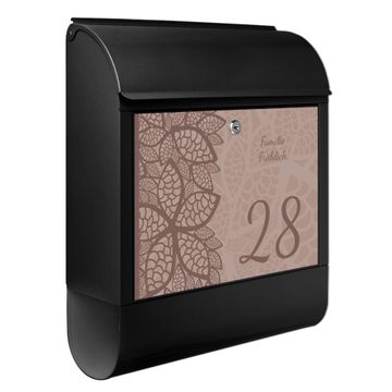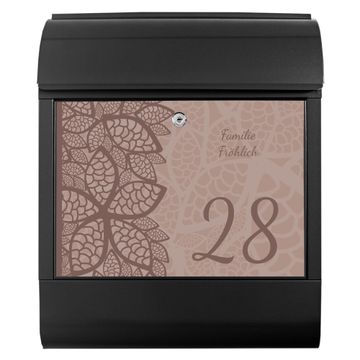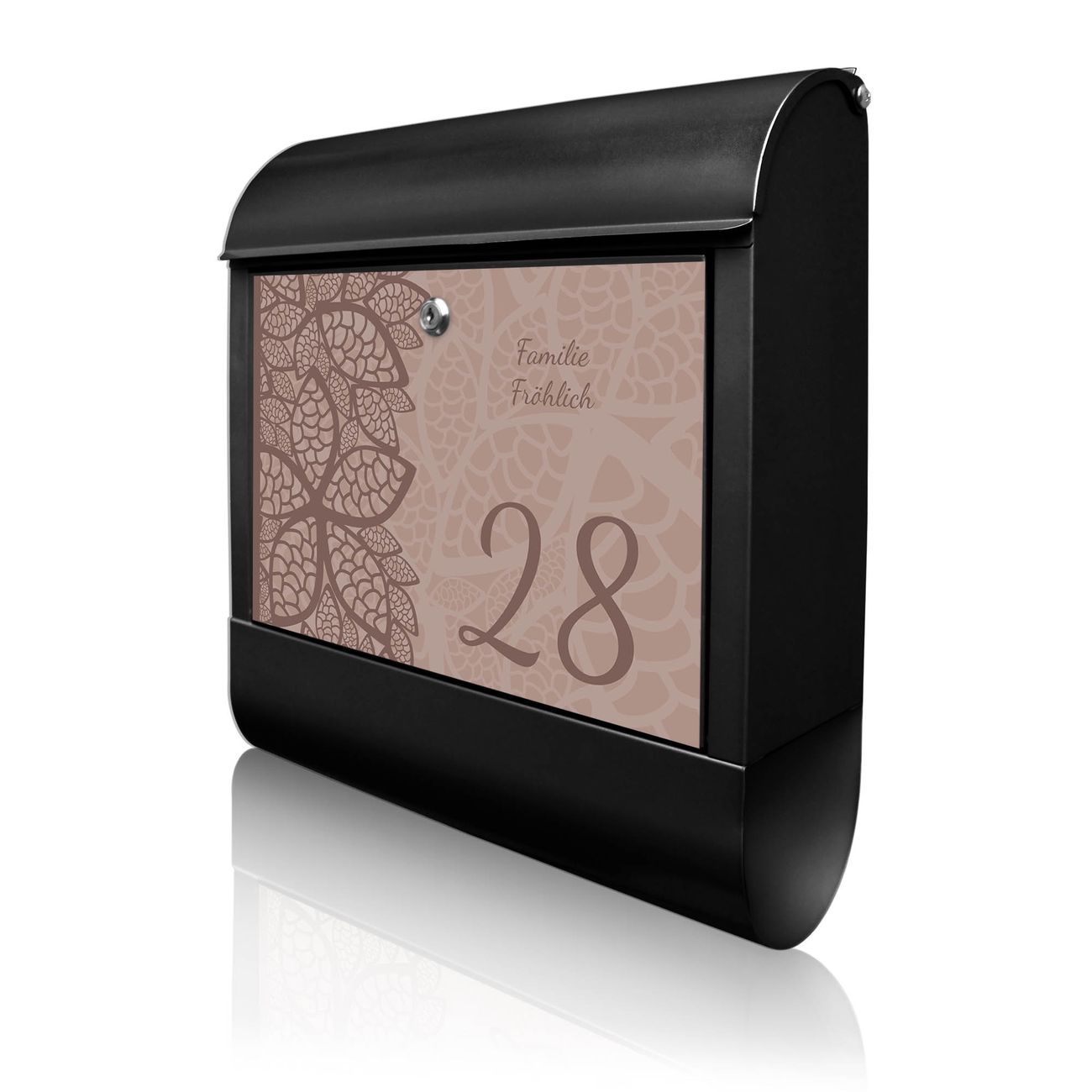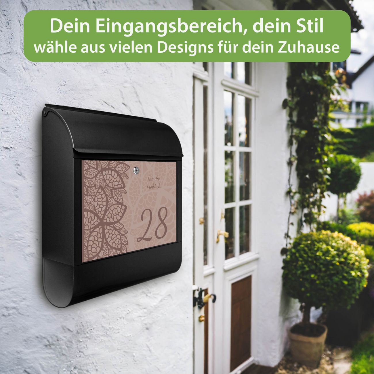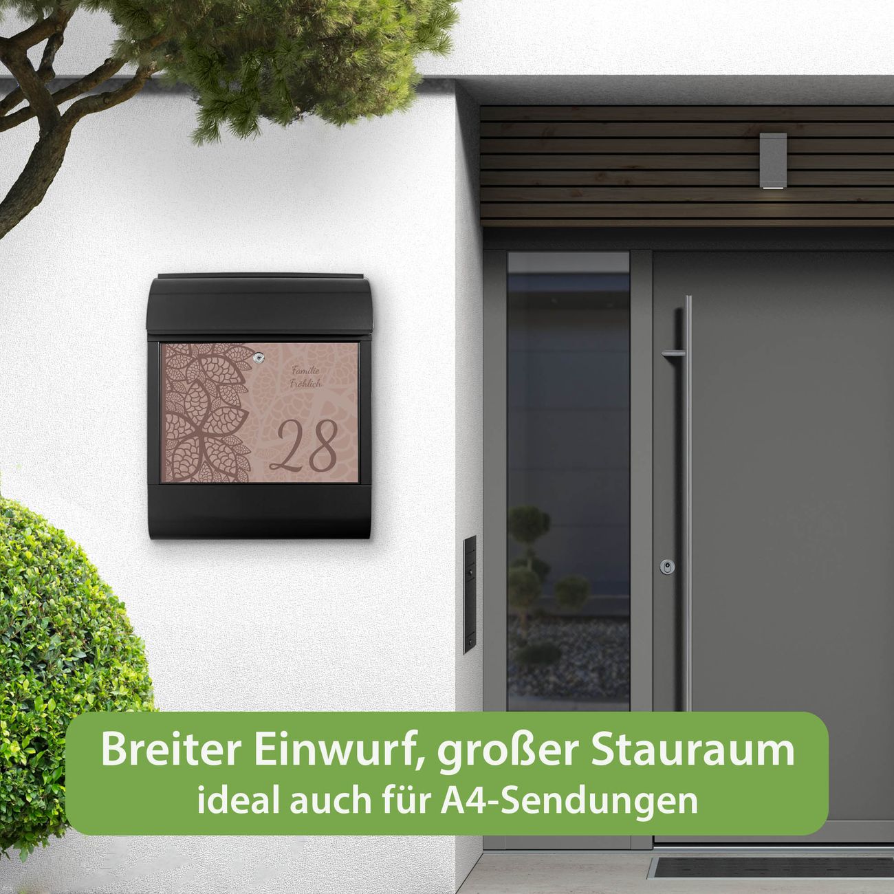 DESIGN: Der Postkasten mit Motiv Motiv Blattmuster hat ein sehr ansprechendes und ausgefallenes Design, damit entlocken Sie Ihren Nachbarn und dem Postboten ein Lächeln. Heben Sie Sich von der tristen grauen Masse ab, ohne auf Funktionalität zu verzichten. DETAILS: Der Postkasten besteht aus pulverbeschichtetem Stahl. Er ist 38x46x12,5cm groß. Das Motiv besteht aus einer wetter- und UV-resistenten Folie, die mit einem Schutzlaminat überzogen ist, sodass der Briefkasten zusätzlich vor Kratzern geschützt ist. Der Briefkasten wird mit Montagematerial, zusätzlich zwei Schlüssel sowie einer Bohrschablone geliefert. NUTZEN: Sie können diesen Briefkasten sowohl als Wandbriefkasten montieren oder einen passenden Ständer kaufen und als Standbriefkasten einbetonieren. Die Größe bietet genügend Platz für Sendungen aller Art, der Einwurf fasst auch größere A4 Sendungen. BANJADO: Ihr Briefkasten wird in Sachsen in einer kleinen Manufaktur von Hand veredelt. Die Motivfolie ist lösungsmittelfrei und schutzlaminiert für einen langen Halt. Wir legen großen Wert auf die Verbindung von Funktionalität und Design. Sie erhalten Handarbeit aus Sachsen.