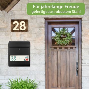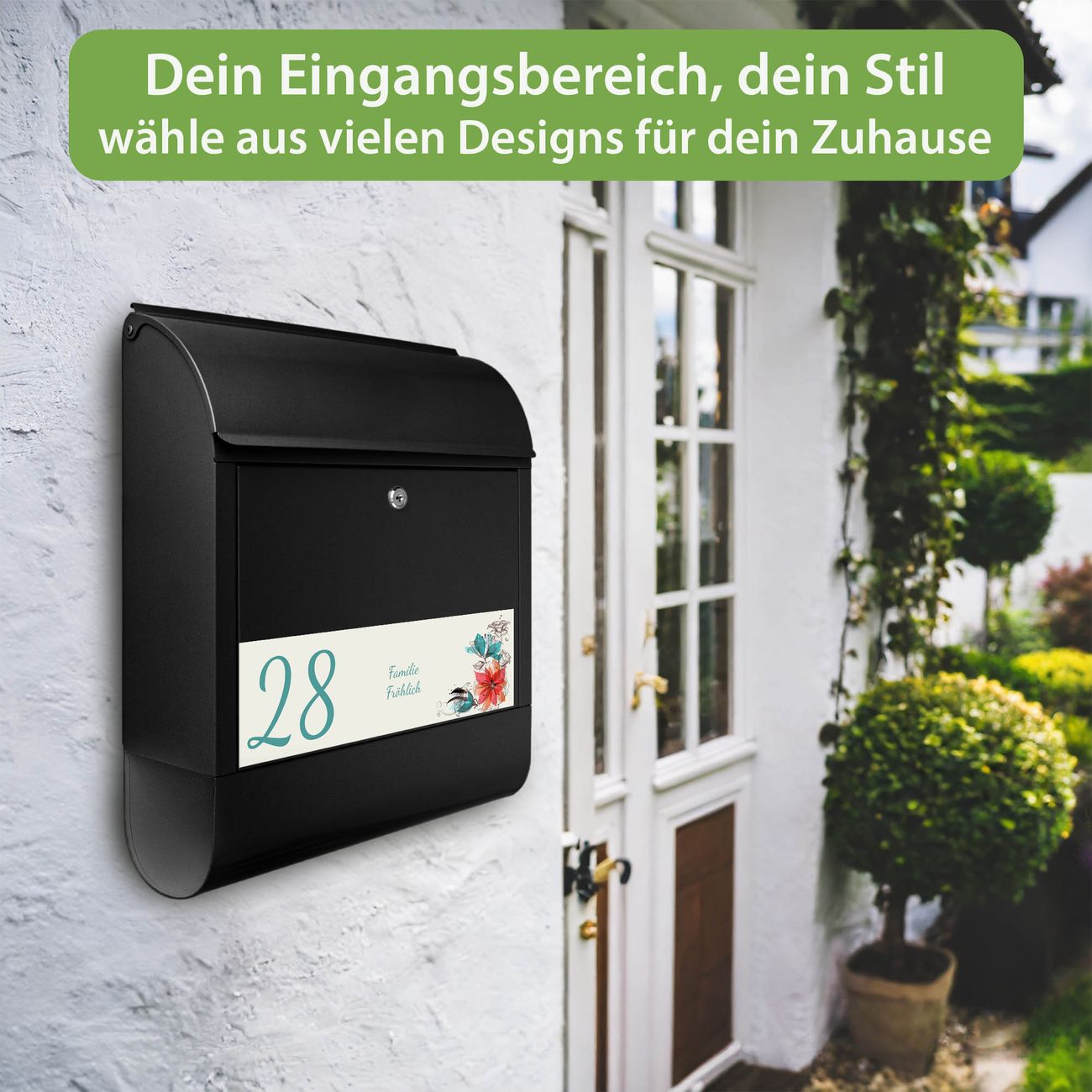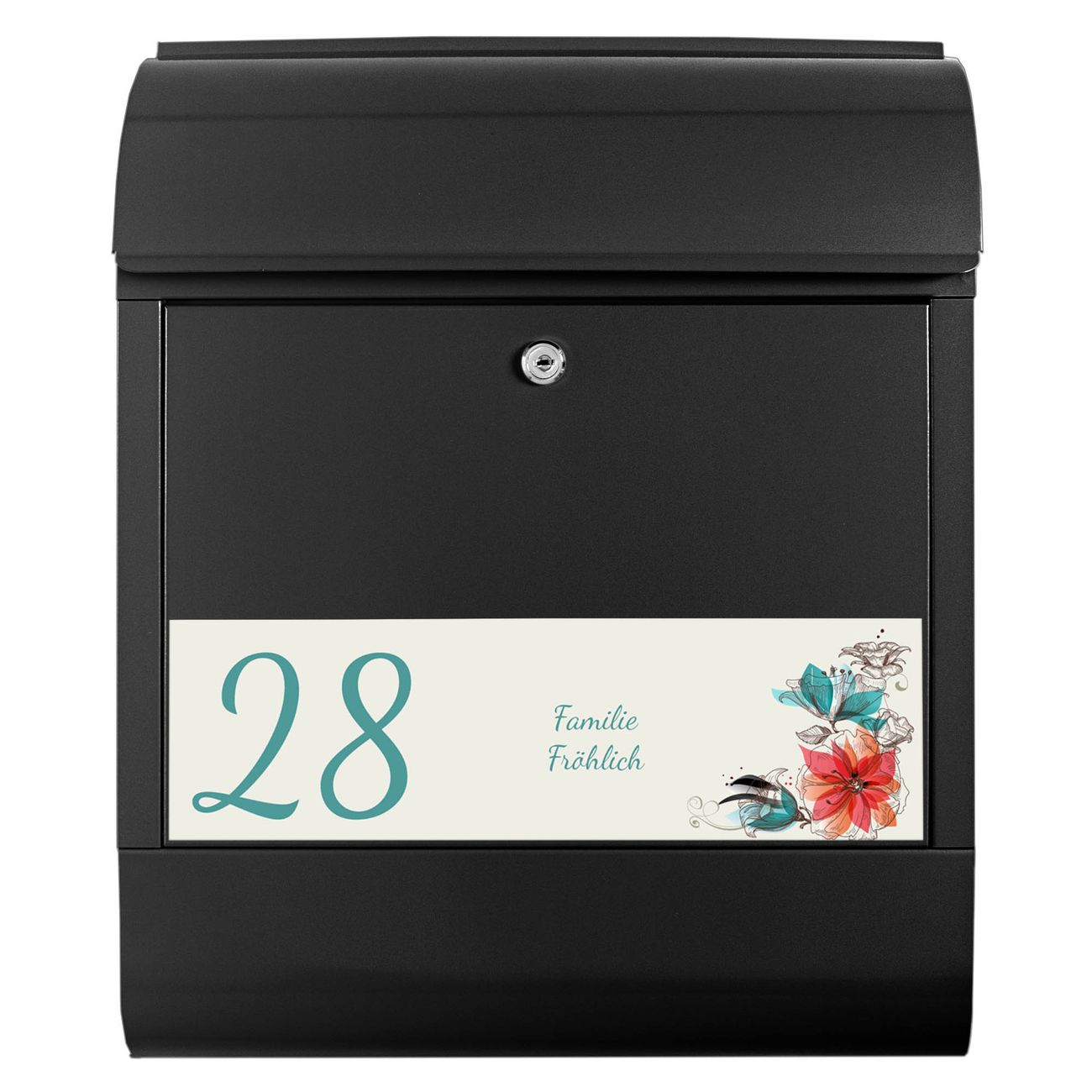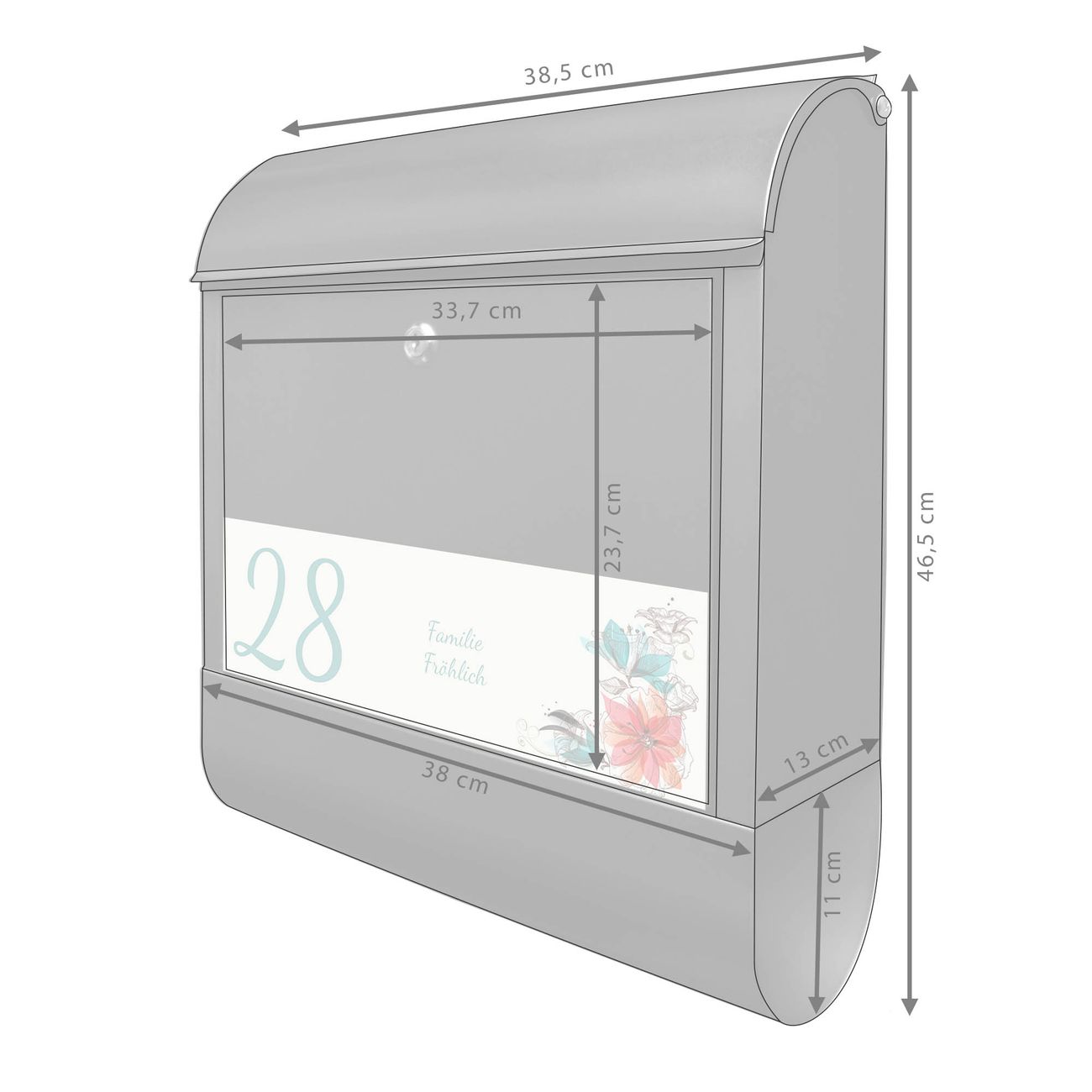 Großer Stahl Briefkasten Motiv Blumenkaligraphie kompakt