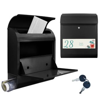 DESIGN: Der Postkasten mit Motiv Motiv Blumenkaligraphie kompakt hat ein sehr ansprechendes und ausgefallenes Design, damit entlocken Sie Ihren Nachbarn und dem Postboten ein Lächeln. Heben Sie Sich von der tristen grauen Masse ab, ohne auf Funktionalität zu verzichten. DETAILS: Der Postkasten besteht aus pulverbeschichtetem Stahl. Er ist 38x46x12,5cm groß. Das Motiv besteht aus einer wetter- und UV-resistenten Folie, die mit einem Schutzlaminat überzogen ist, sodass der Briefkasten zusätzlich vor Kratzern geschützt ist. Der Briefkasten wird mit Montagematerial, zusätzlich zwei Schlüssel sowie einer Bohrschablone geliefert. NUTZEN: Sie können diesen Briefkasten sowohl als Wandbriefkasten montieren oder einen passenden Ständer kaufen und als Standbriefkasten einbetonieren. Die Größe bietet genügend Platz für Sendungen aller Art, der Einwurf fasst auch größere A4 Sendungen. BANJADO: Ihr Briefkasten wird in Sachsen in einer kleinen Manufaktur von Hand veredelt. Die Motivfolie ist lösungsmittelfrei und schutzlaminiert für einen langen Halt. Wir legen großen Wert auf die Verbindung von Funktionalität und Design. Sie erhalten Handarbeit aus Sachsen.