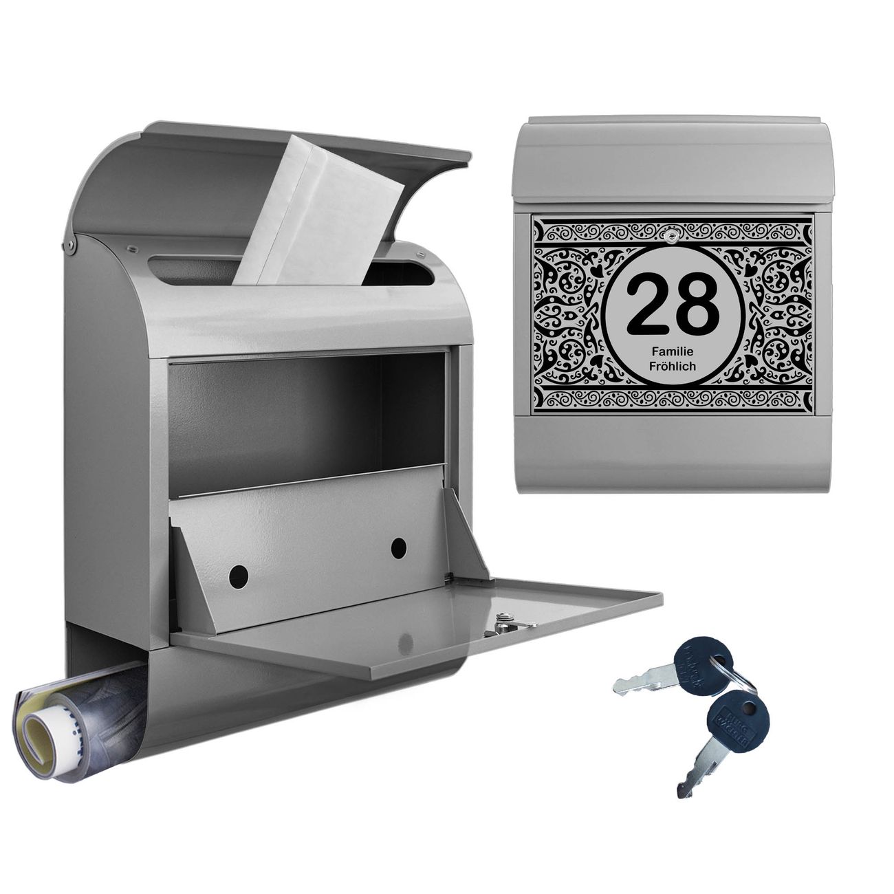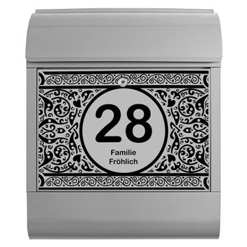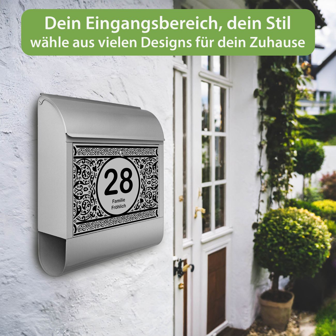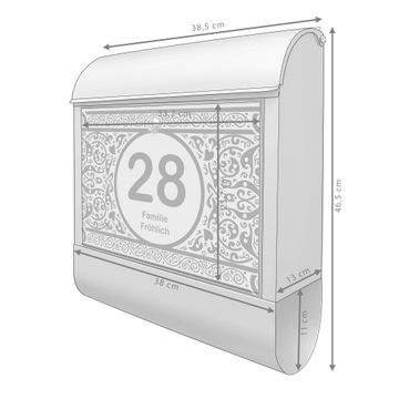 DESIGN: Der Postkasten mit Motiv Motiv Ornament SG hat ein sehr ansprechendes und ausgefallenes Design, damit entlocken Sie Ihren Nachbarn und dem Postboten ein Lächeln. Heben Sie Sich von der tristen grauen Masse ab, ohne auf Funktionalität zu verzichten. DETAILS: Der Postkasten besteht aus pulverbeschichtetem Stahl. Er ist 38x46x12,5cm groß. Das Motiv besteht aus einer wetter- und UV-resistenten Folie, die mit einem Schutzlaminat überzogen ist, sodass der Briefkasten zusätzlich vor Kratzern geschützt ist. Der Briefkasten wird mit Montagematerial, zusätzlich zwei Schlüssel sowie einer Bohrschablone geliefert. NUTZEN: Sie können diesen Briefkasten sowohl als Wandbriefkasten montieren oder einen passenden Ständer kaufen und als Standbriefkasten einbetonieren. Die Größe bietet genügend Platz für Sendungen aller Art, der Einwurf fasst auch größere A4 Sendungen. BANJADO: Ihr Briefkasten wird in Sachsen in einer kleinen Manufaktur von Hand veredelt. Die Motivfolie ist lösungsmittelfrei und schutzlaminiert für einen langen Halt. Wir legen großen Wert auf die Verbindung von Funktionalität und Design. Sie erhalten Handarbeit aus Sachsen.