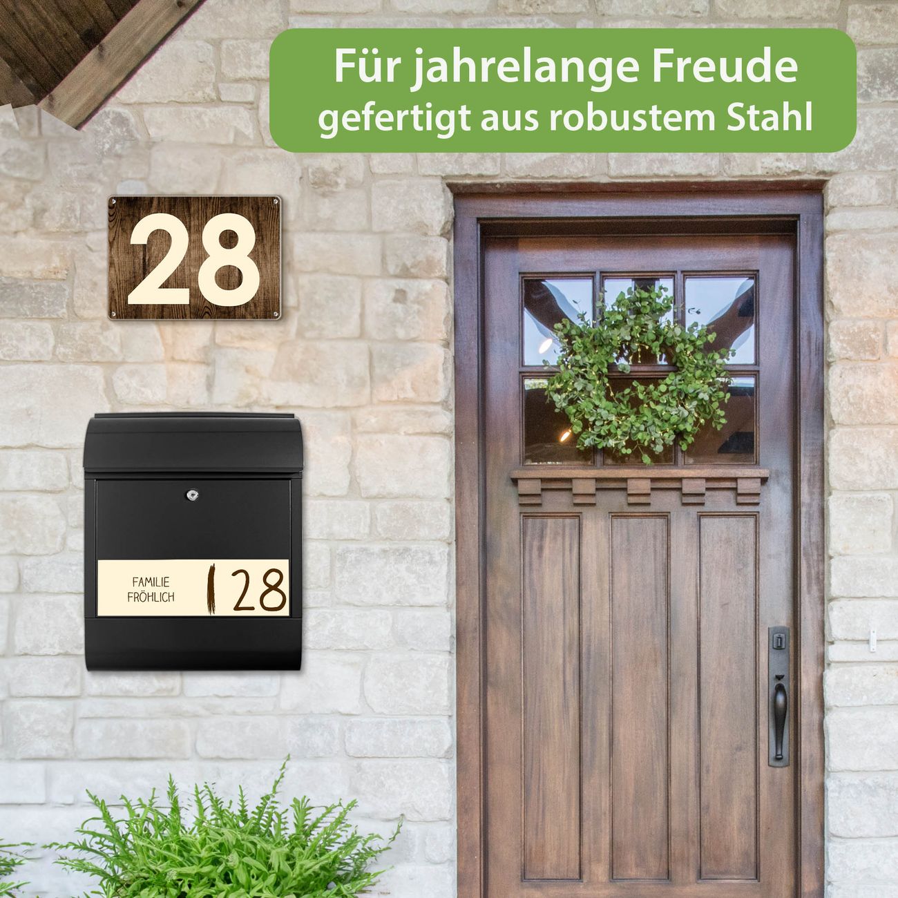 Der Vorschau-Text Familie Fröhlich wird durch Ihren persönlichen Wunschtext ersetzt. Die Schriftart und Farbe bleiben gleich wie in der Vorschau.