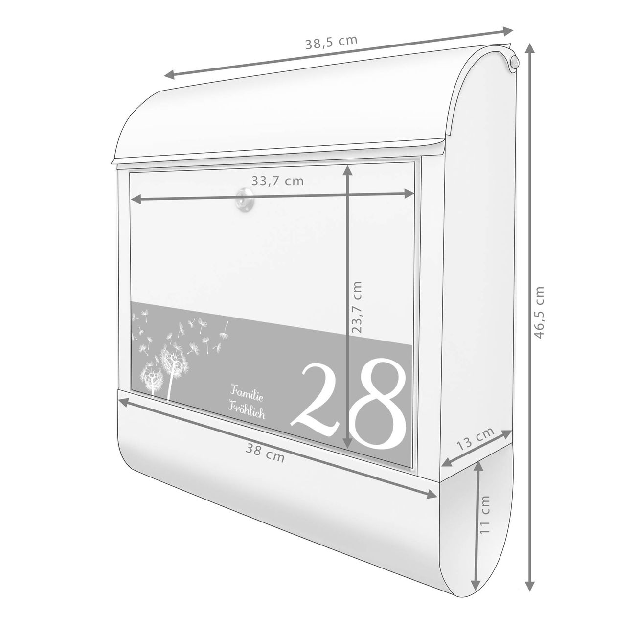 Großer Stahl Briefkasten Motiv Pusteblume SW kompakt