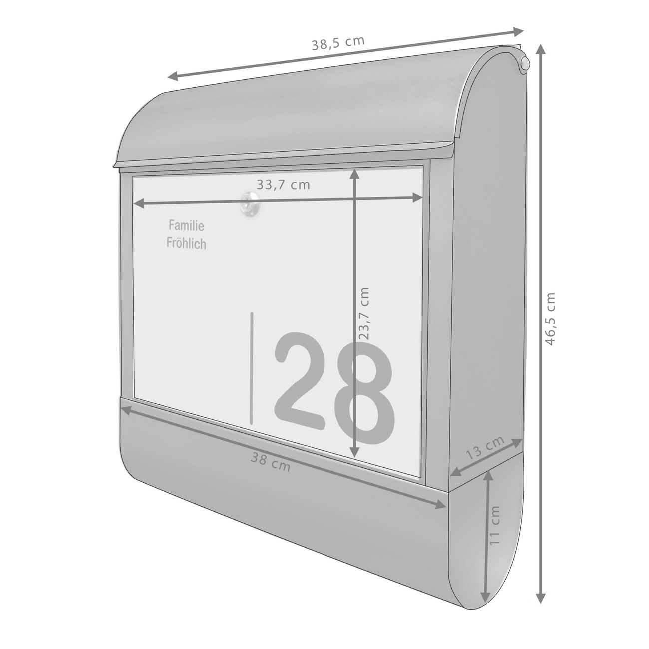 - Briefschlitz: 33x3,5cm BxH