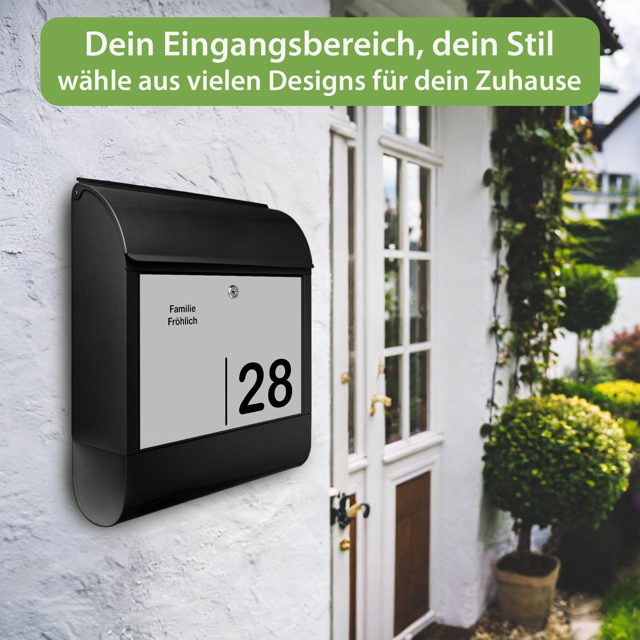 Großer Stahl Briefkasten Motiv Schwarz auf Grau 2