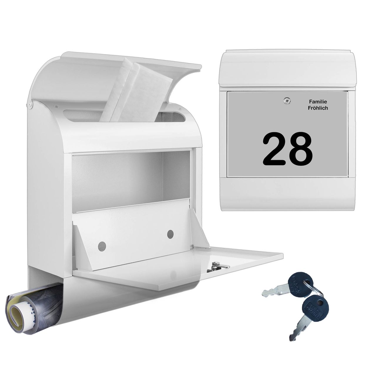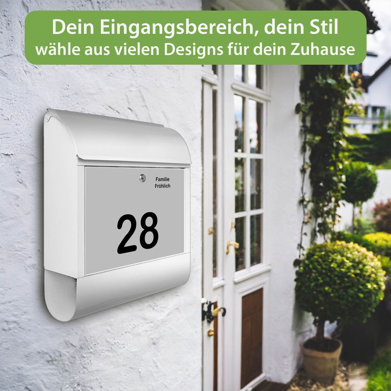 DESIGN: Der Postkasten mit Motiv Motiv Schwarz auf Grau hat ein sehr ansprechendes und ausgefallenes Design, damit entlocken Sie Ihren Nachbarn und dem Postboten ein Lächeln. Heben Sie Sich von der tristen grauen Masse ab, ohne auf Funktionalität zu verzichten. DETAILS: Der Postkasten besteht aus pulverbeschichtetem Stahl. Er ist 38x46x12,5cm groß. Das Motiv besteht aus einer wetter- und UV-resistenten Folie, die mit einem Schutzlaminat überzogen ist, sodass der Briefkasten zusätzlich vor Kratzern geschützt ist. Der Briefkasten wird mit Montagematerial, zusätzlich zwei Schlüssel sowie einer Bohrschablone geliefert. NUTZEN: Sie können diesen Briefkasten sowohl als Wandbriefkasten montieren oder einen passenden Ständer kaufen und als Standbriefkasten einbetonieren. Die Größe bietet genügend Platz für Sendungen aller Art, der Einwurf fasst auch größere A4 Sendungen. BANJADO: Ihr Briefkasten wird in Sachsen in einer kleinen Manufaktur von Hand veredelt. Die Motivfolie ist lösungsmittelfrei und schutzlaminiert für einen langen Halt. Wir legen großen Wert auf die Verbindung von Funktionalität und Design. Sie erhalten Handarbeit aus Sachsen.