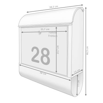 Großer Stahl Briefkasten Motiv Schwarz auf Grau