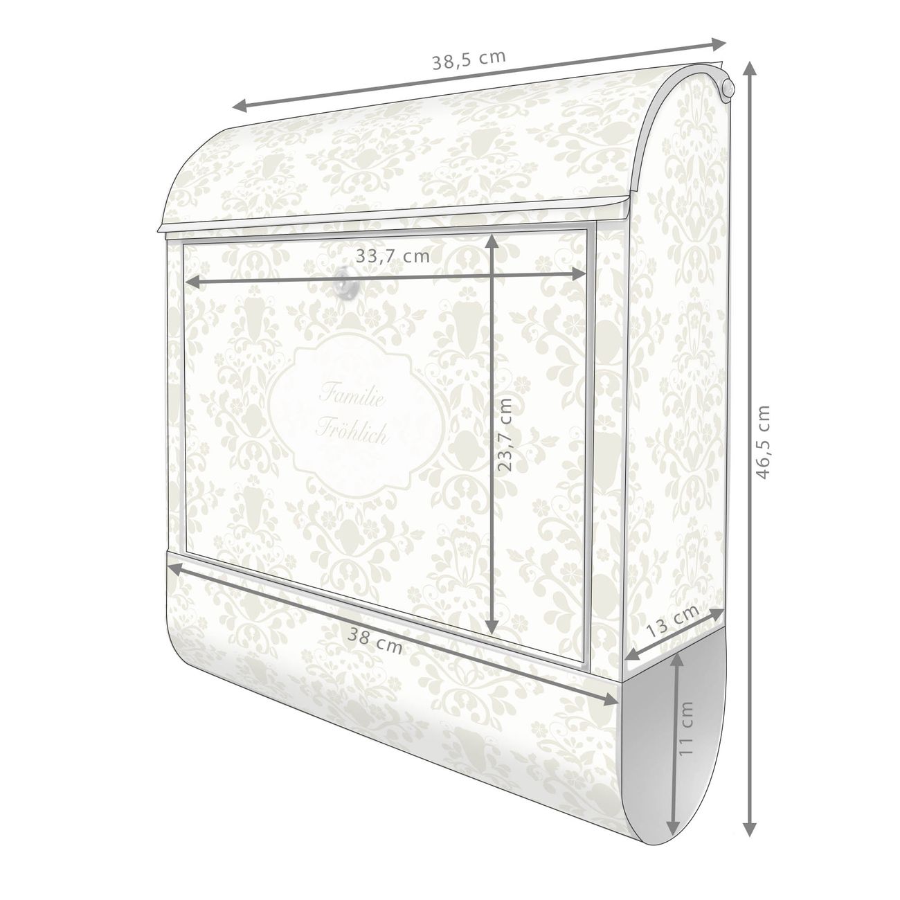 DESIGN: Der Postkasten mit Motiv Motiv Tapete Weiß hat ein sehr ansprechendes und ausgefallenes Design, damit entlocken Sie Ihren Nachbarn und dem Postboten ein Lächeln. Heben Sie Sich von der tristen grauen Masse ab, ohne auf Funktionalität zu verzichten. DETAILS: Der Postkasten besteht aus pulverbeschichtetem Stahl. Er ist 38x46x12,5cm groß. Das Motiv besteht aus einer wetter- und UV-resistenten Folie, die mit einem Schutzlaminat überzogen ist, sodass der Briefkasten zusätzlich vor Kratzern geschützt ist. Der Briefkasten wird mit Montagematerial, zusätzlich zwei Schlüssel sowie einer Bohrschablone geliefert. NUTZEN: Sie können diesen Briefkasten sowohl als Wandbriefkasten montieren oder einen passenden Ständer kaufen und als Standbriefkasten einbetonieren. Die Größe bietet genügend Platz für Sendungen aller Art, der Einwurf fasst auch größere A4 Sendungen. BANJADO: Ihr Briefkasten wird in Sachsen in einer kleinen Manufaktur von Hand veredelt. Die Motivfolie ist lösungsmittelfrei und schutzlaminiert für einen langen Halt. Wir legen großen Wert auf die Verbindung von Funktionalität und Design. Sie erhalten Handarbeit aus Sachsen.