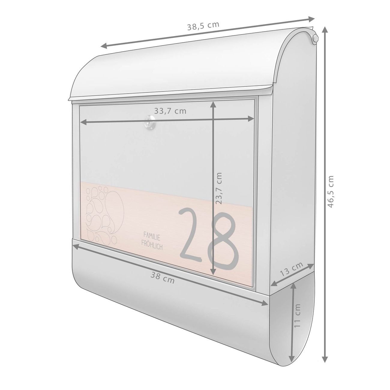 - Briefschlitz: 33x3,5cm BxH